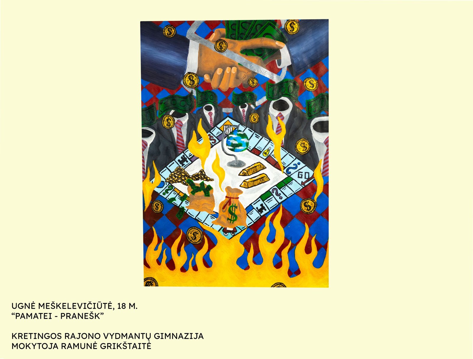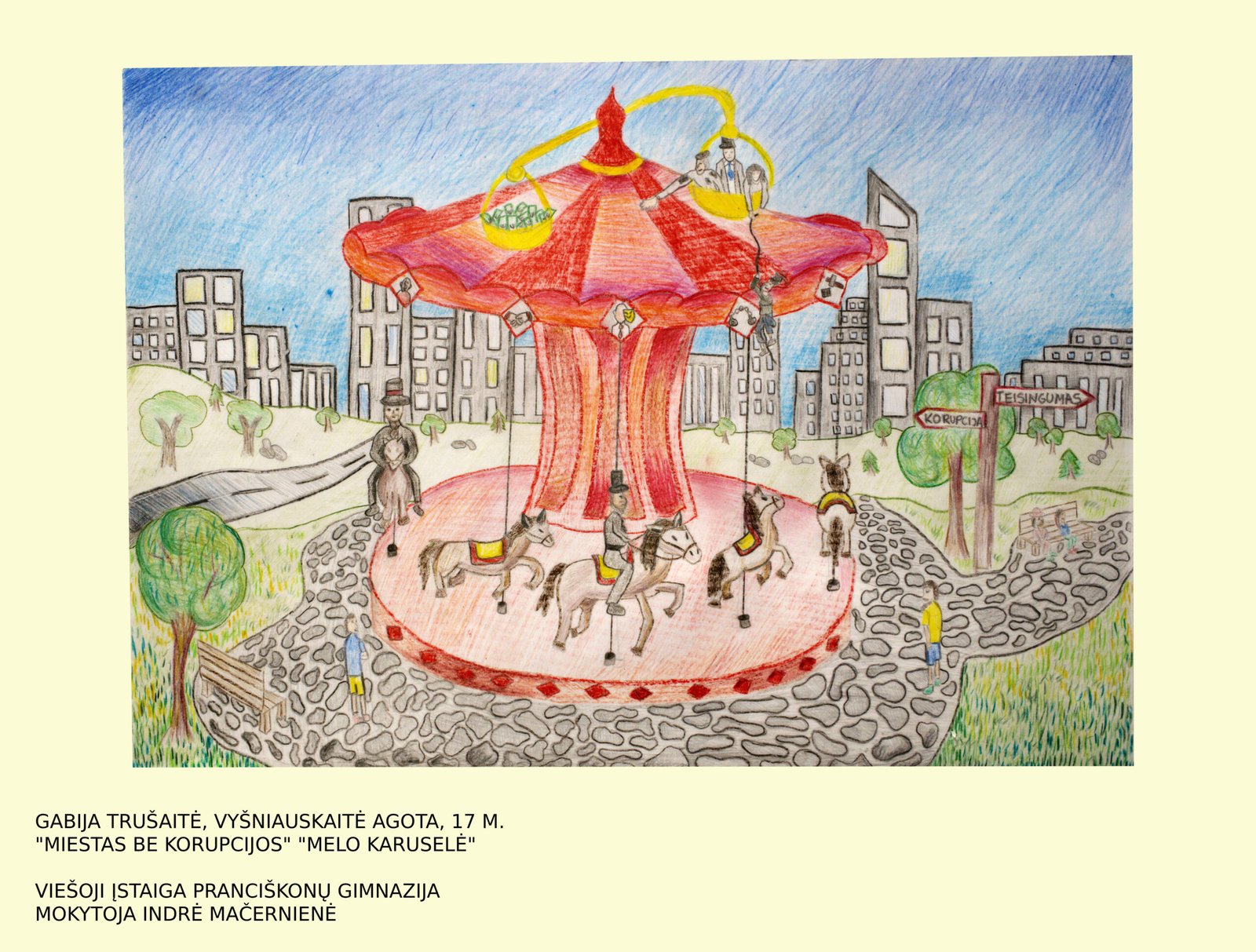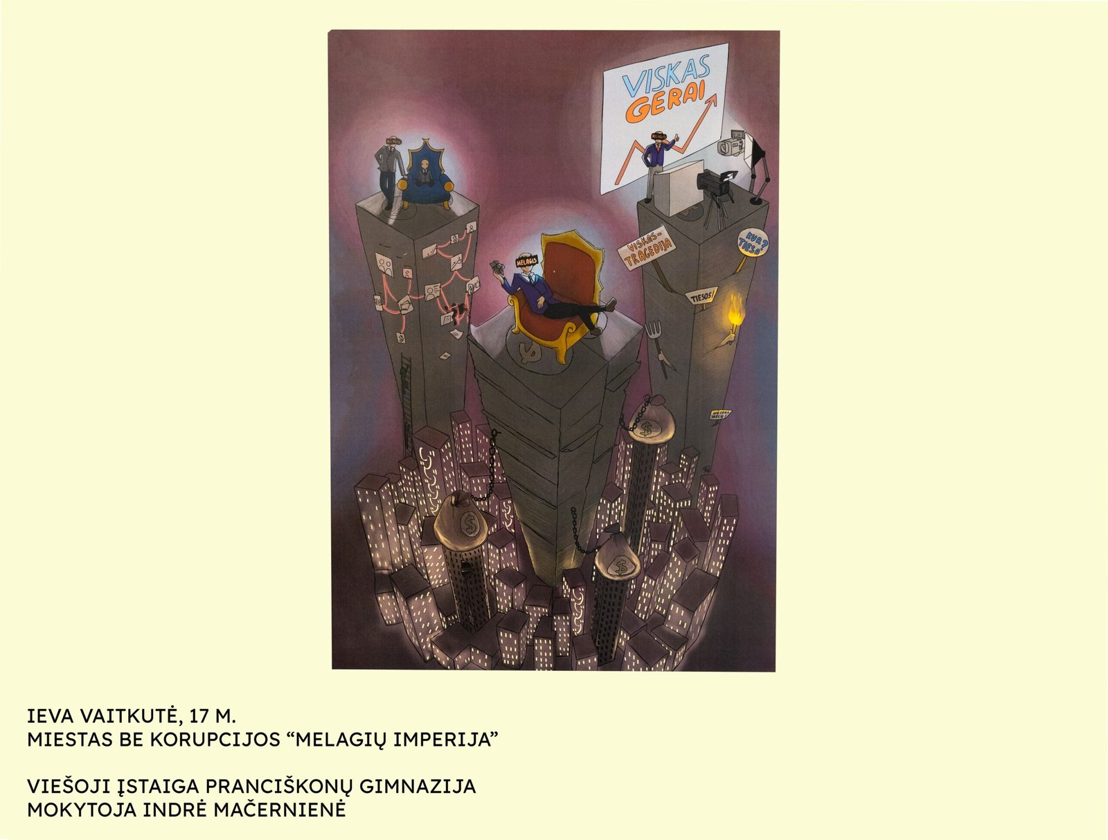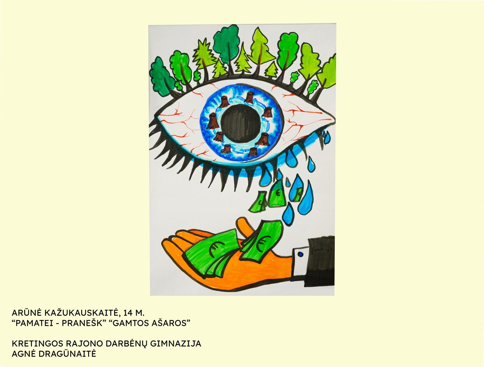 Ievai Grikpėdytei, Kretingos rajono Salantų gimnazijos mokinei, už savitą temos interpretavimą (darbas „Korupcijos upė“; mokytojas Rimantas Jonušas);