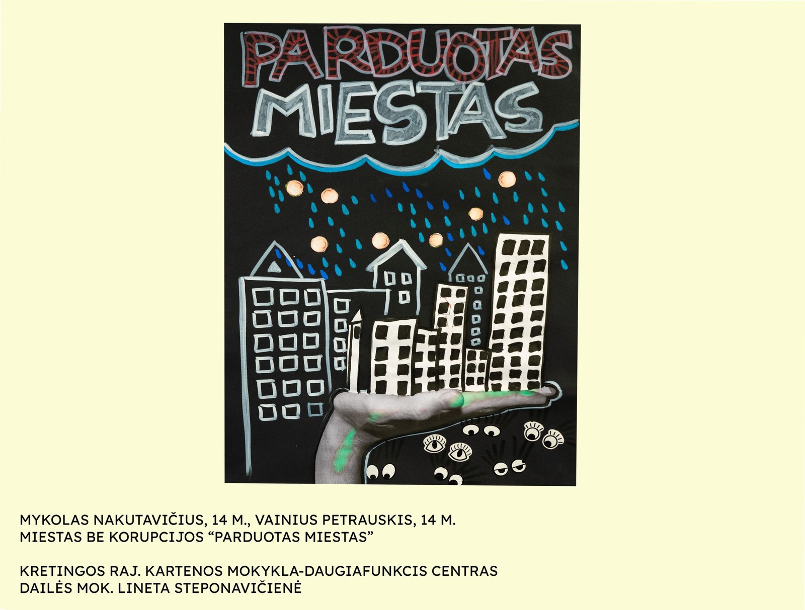 Mykolui Nakutavičiui, Vainiui Petrauskiui, Kretingos rajono Kartenos mokyklos-daugiafunkcio centro mokiniams, už darbo „Parduotas miestas“ kompoziciją (mokytoja Lineta Steponavičienė);