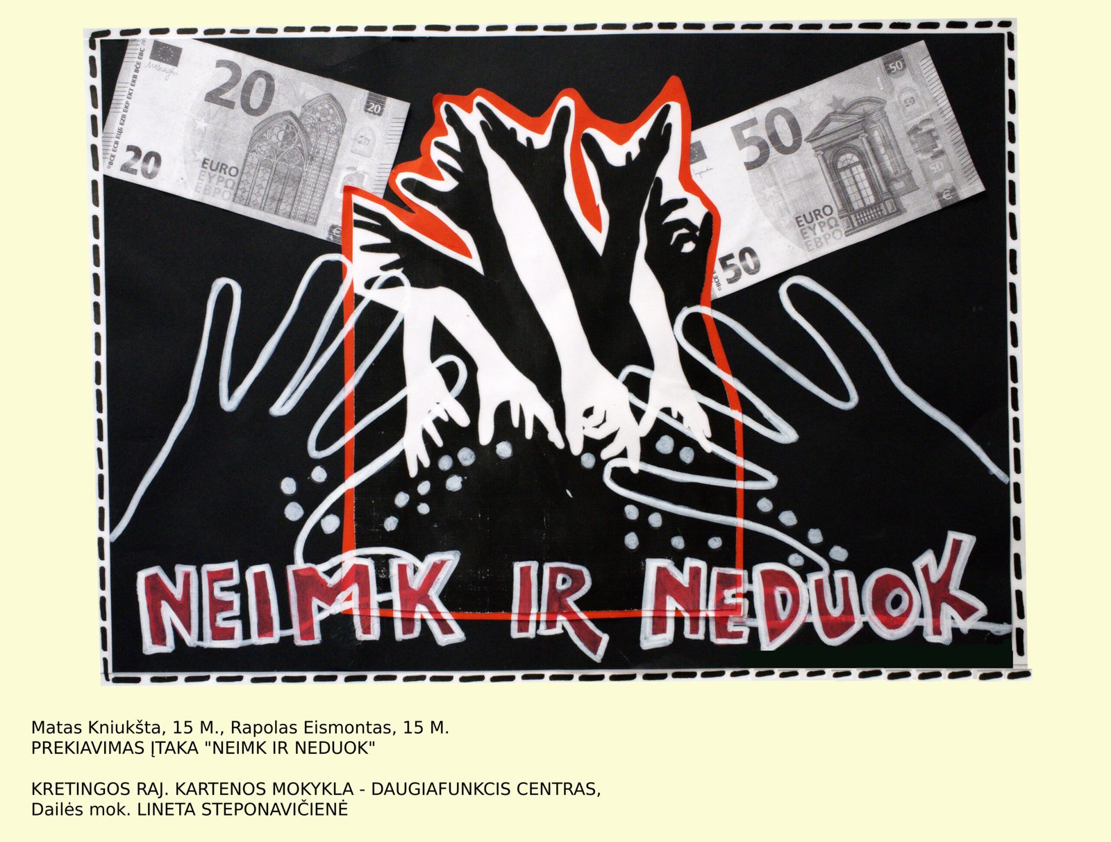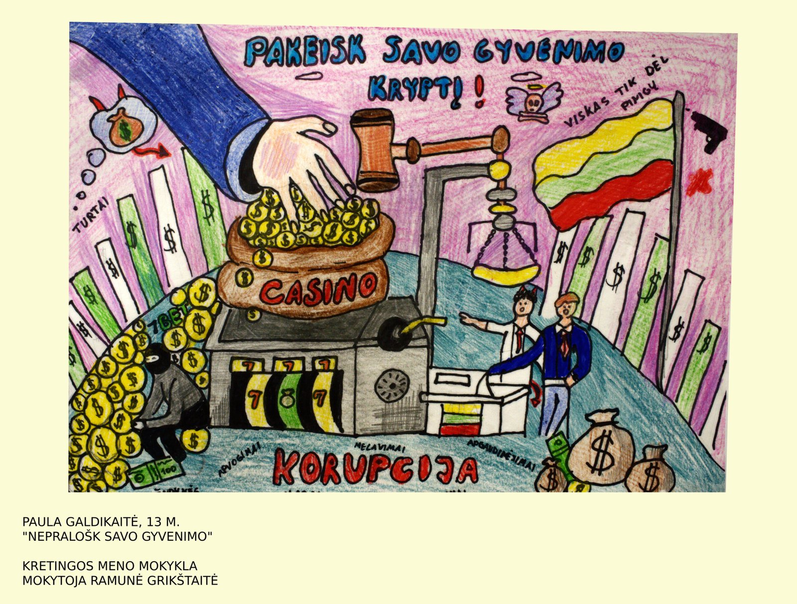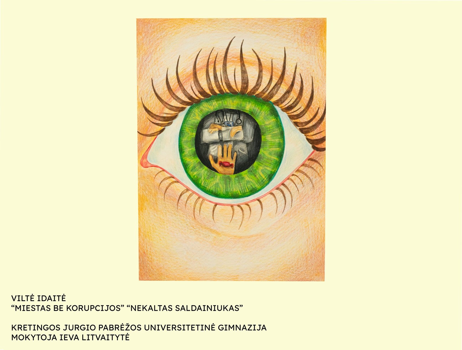 II vieta – Evelinai Kolajanskaitei, Kretingos rajono Kartenos mokyklos-daugiafunkcio centro mokinei, už darbą „Ne – korupcijai“ (mokytoja Lineta Steponavičienė);