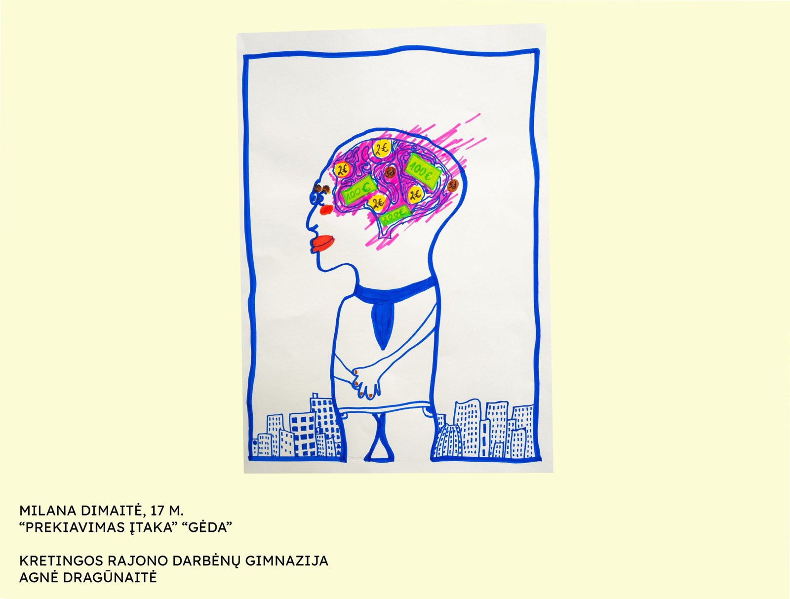 Ievai Vaitkutei, viešosios įstaigos Pranciškonų gimnazijos mokinei, už multikultūrinės minties raišką (darbas „Melagių imperija“; mokytoja Indrė Mačernienė);