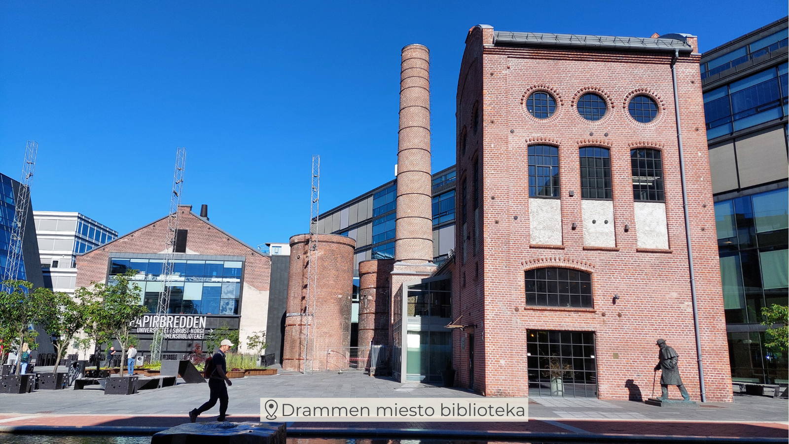 Įdomu tai, kad tame pačiame pastate, kuriame veikia Kongsberg biblioteka, savo veiklą vykdo ir universiteto biblioteka, bei pats universitetas. Analogiška situacija Drammen bibliotekos pastate, kurį lankėme paskutiniąją vizito dieną. Bibliotekos atstovas Jorgen Hovde pristatė pagrindinius praėjusių metų vykdytus projektus, Drammeno literatūros festivalį, Vindtorno poezijos taurės renginį ir kt. Bibliotekos pastatas įkurdintas 2007 metais, tad iki šio laiko įvyko tam tikri pokyčiai visuomenėje, kurie diktuoja būtinybę pertvarkyti erdves, ypač jas pritaikant jaunimui. Šiuo metu vyksta bibliotekos atnaujinimo projektavimo darbai.