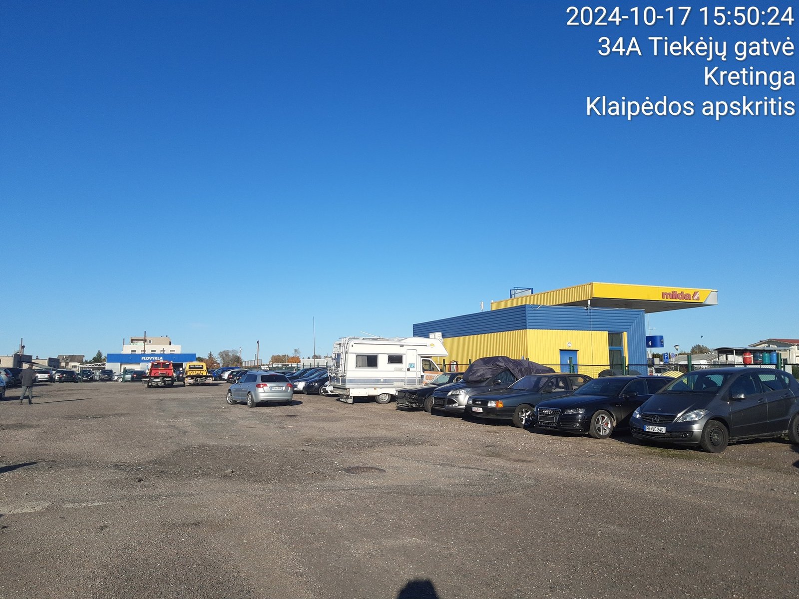 „Prie Savivaldybei nuosavybės teise priklausančio pastato – sporto klubo, adresu Tiekėjų g. 34, Kretingos m., apžiūros metu jokia sportinė veikla vykdoma nebuvo. Žemės sklype prie sporto klubo pastato pristatyta daug įvairių automobilių. Viename iš prie klubo pastato esančiame garaže vykdoma automobilių remonto veikla. Sporto klubo pastato dešinėje pusėje, Savivaldybės patikėjimo teise valdomo žemės sklypo teritorijoje įrengta automobilių pardavimo aikštelė, kurioje vykdoma automobilių pardavimo veikla. Aikštelėje matosi įrengtas statinys, skirtas pardavimo funkcijoms vykdyti. Automobilių pardavimo aikštelė aptverta apie 2 m. aukščio segmentine tvora. Patikrinus Registrų cento kadastriniame žemėlapyje, vizualiai nustatyta, kad tvora įrengta sklypo, adresu Tiekėjų g. 34, Kretingos m., ribose“.