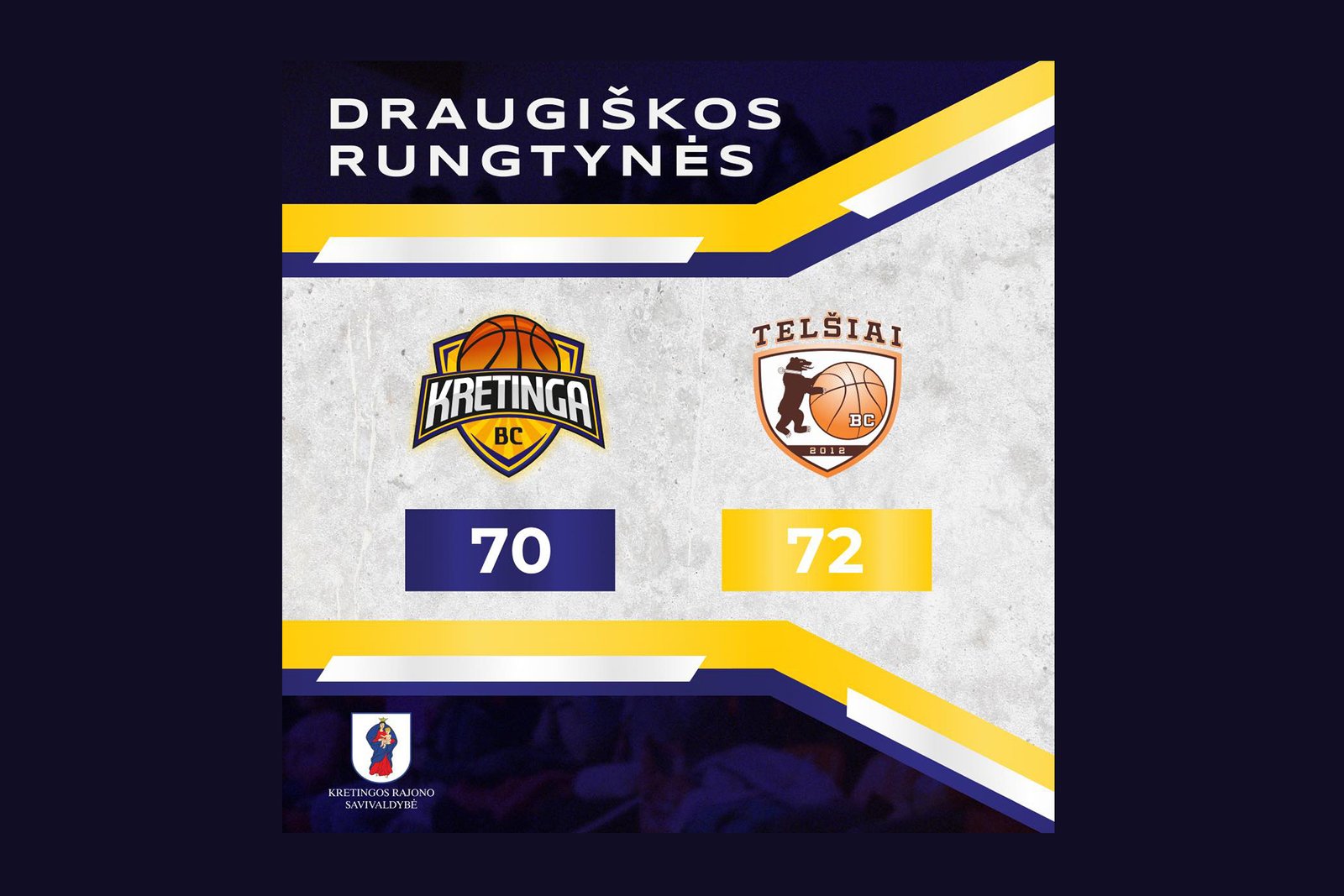 Draugiškose rungtynėse po atkaklios kovos „Kretinga“ išvykoje 70:72 pralaimėjo „Telšių” komandai.