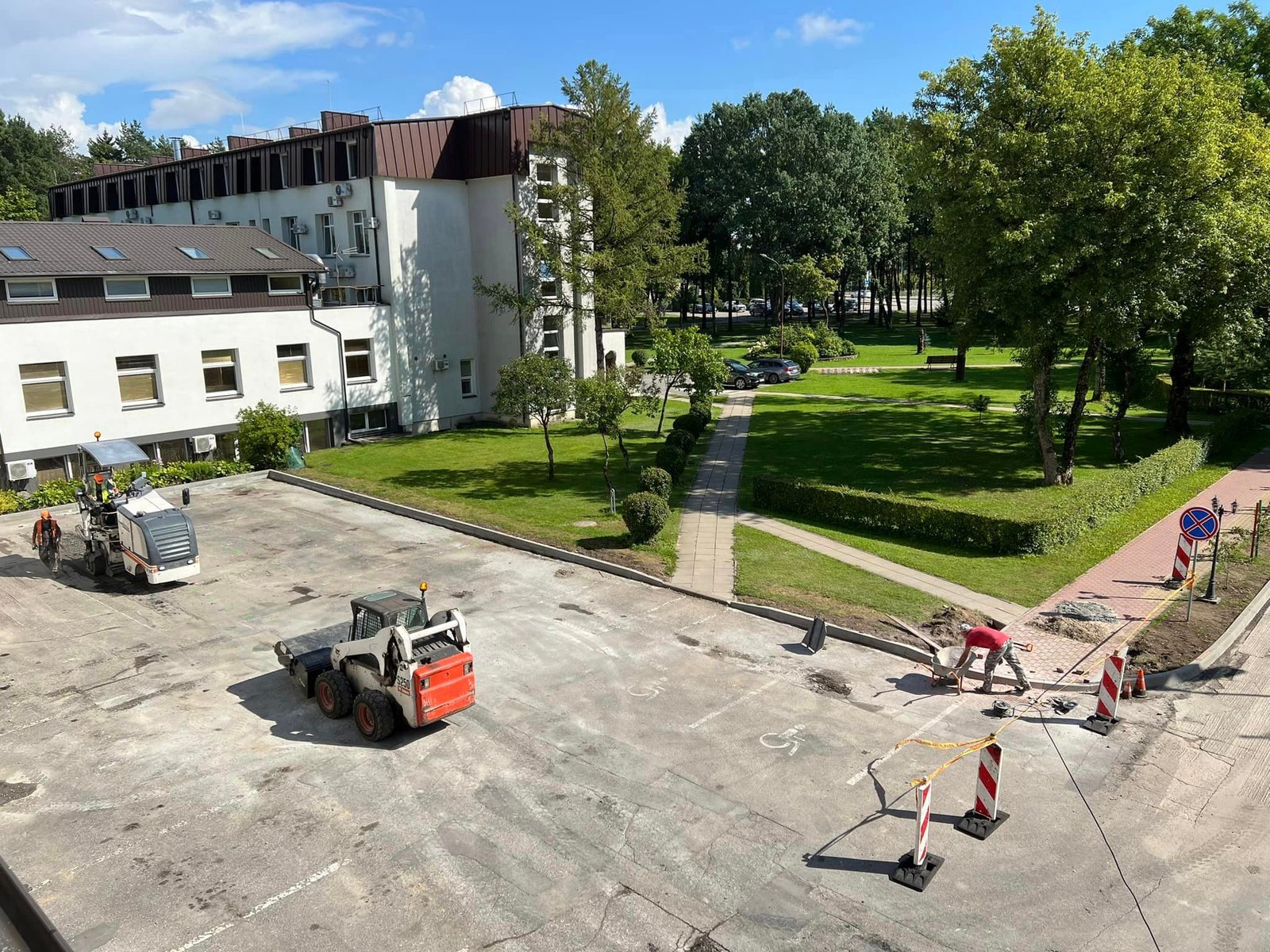 Ir štai, vyriausiojo gydytojo Romaldo Sakalausko sprendimu, vyksta intensyvūs pagrindinio įvažiavimo kelio ir automobilių stovėjimo aikštelės remonto darbai, kurie netrukus bus baigti.