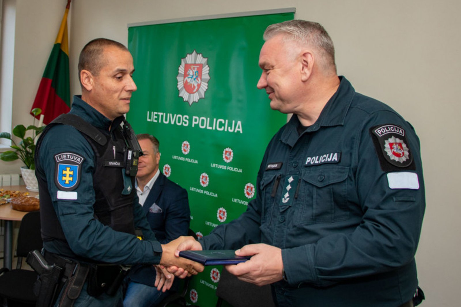 Minint Policijos (Angelų sargų) dieną, už drąsą ir pasiaukojimą gelbstint garbaus amžiaus senjorę iš degančio buto Kretingos r. PK Reagavimo skyriaus pareigūnams Mariui Stančiui ir Juliui Prušinskui įteikti II laipsnio