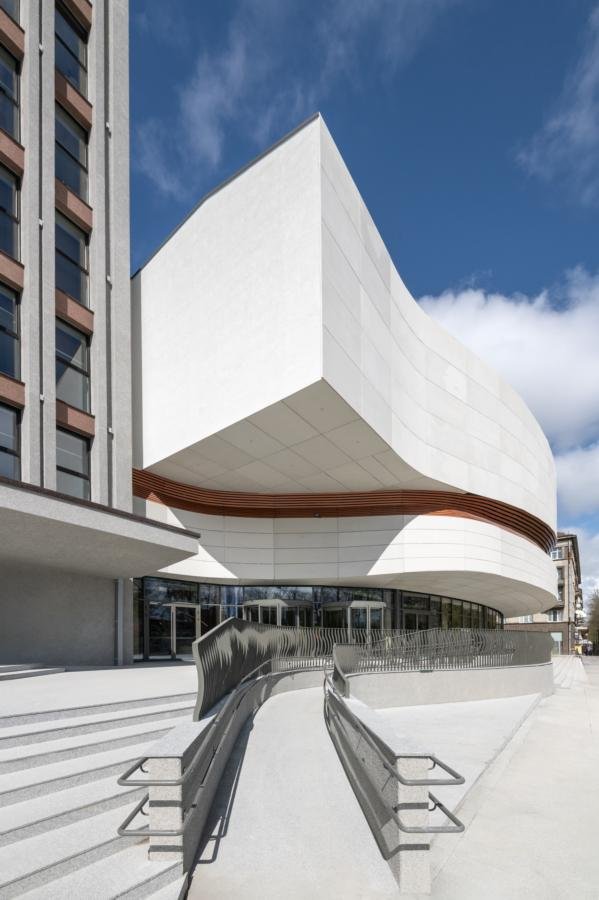 Ir, žinoma, apie bangas! Banguotas ne tik Muzikinio teatro logotipas, didžiulės plokštumos primenančios bangas dengia pastato stogą, vidaus laiptai savo forma primena jūros kriauklę ir t.t.