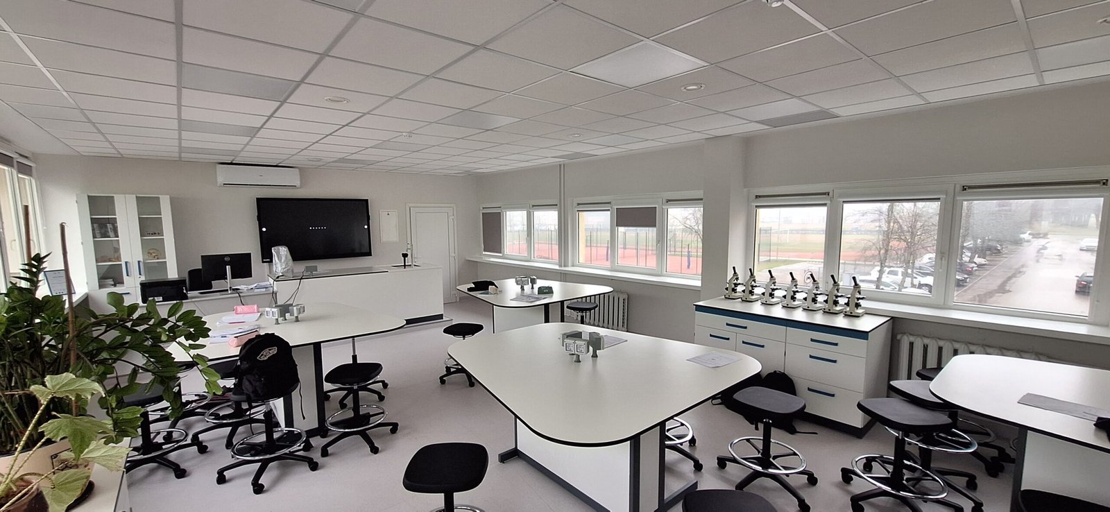 Jurgio Pabrėžos universitetinės gimnazijos direktoriaus Kęstučio Trakšelio teigimu, naujajame Gamtos mokslų centre įrengtos gamtos mokslų, fizikos ir robotikos laboratorijos – modernios, atitinkančios dabartinius ergonominius reikalavimus, pritaikytos įtraukiajam ugdymui. Jose pastatytos traukos spintos, interaktyvūs ekranai, kompiuteriai, kita reikalinga įranga ir baldai, kabinetuose įrengta rekuperacinė sistema, kėdės pritaikytos įvairaus ūgio moksleiviams bei kt.