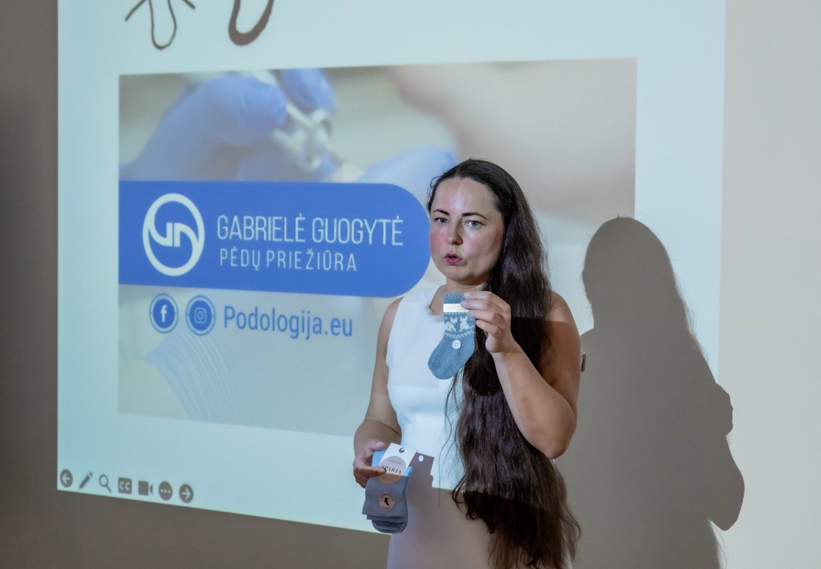 „Jūsų kojos yra Jūsų nepriklausomybės šaltinis ar bent jau jos pagrindas. Kiekvieną dieną kojoms suteikite šiek tiek švelnumo, šiek tiek meilės ir priežiūros“, – paskaitoje kalbėjo Kretingos diabeto klubo „Vilties kelionė“ slaugytoja diabetologė ir podologė Gabrielė Guogytė. Ji akcentavo esminius kasdienės pėdų priežiūros ypatumus, higieną (dažnai pamirštame sausai iššluostyti už kojų pirštų), nagų priežiūros aspektus. Anot medikės, svarbu drėkinti suskilinėjusias pėdas, dėvėti patogius batus, kurie gerai tinka ir nekelia spaudimo ar trinties. Paskaitoje rekomenduota kontroliuoti cukraus kiekį kraujyje, laikytis gydytojo rekomendacijų dėl mitybos, vaistų ir gyvenimo būdo pokyčių. Dažnai lankytis pas podologą, kuris savo žvilgsniu iš šalies, pamatys galimas grėsmes ir rizikas. Tinkama pėdų priežiūra yra būtina siekiant išvengti rimtų komplikacijų ir užtikrinti gerą gyvenimo kokybę ypač sergant cukriniu diabetu. Podologai dažnai dirba su kitais sveikatos priežiūros specialistais, kad užtikrintų išsamų ir veiksmingą gydymą pacientams, ypač tiems, kurie turi lėtinių ligų, kaip diabetas. Gėda dėl pėdų pokyčių yra suprantama, tačiau svarbu atminti, kad daugelis žmonių susiduria su panašiomis problemomis, ir yra būdų, kaip jas valdyti ir gydyti.