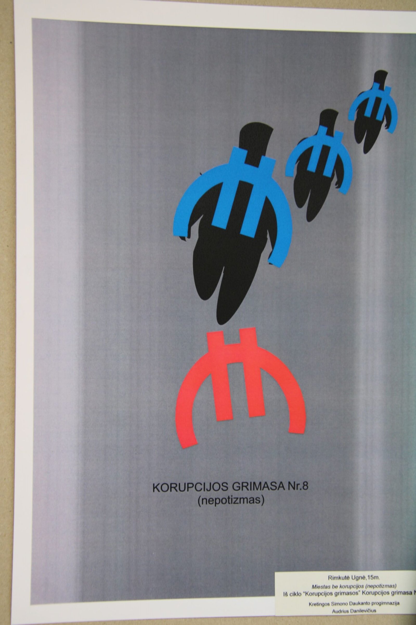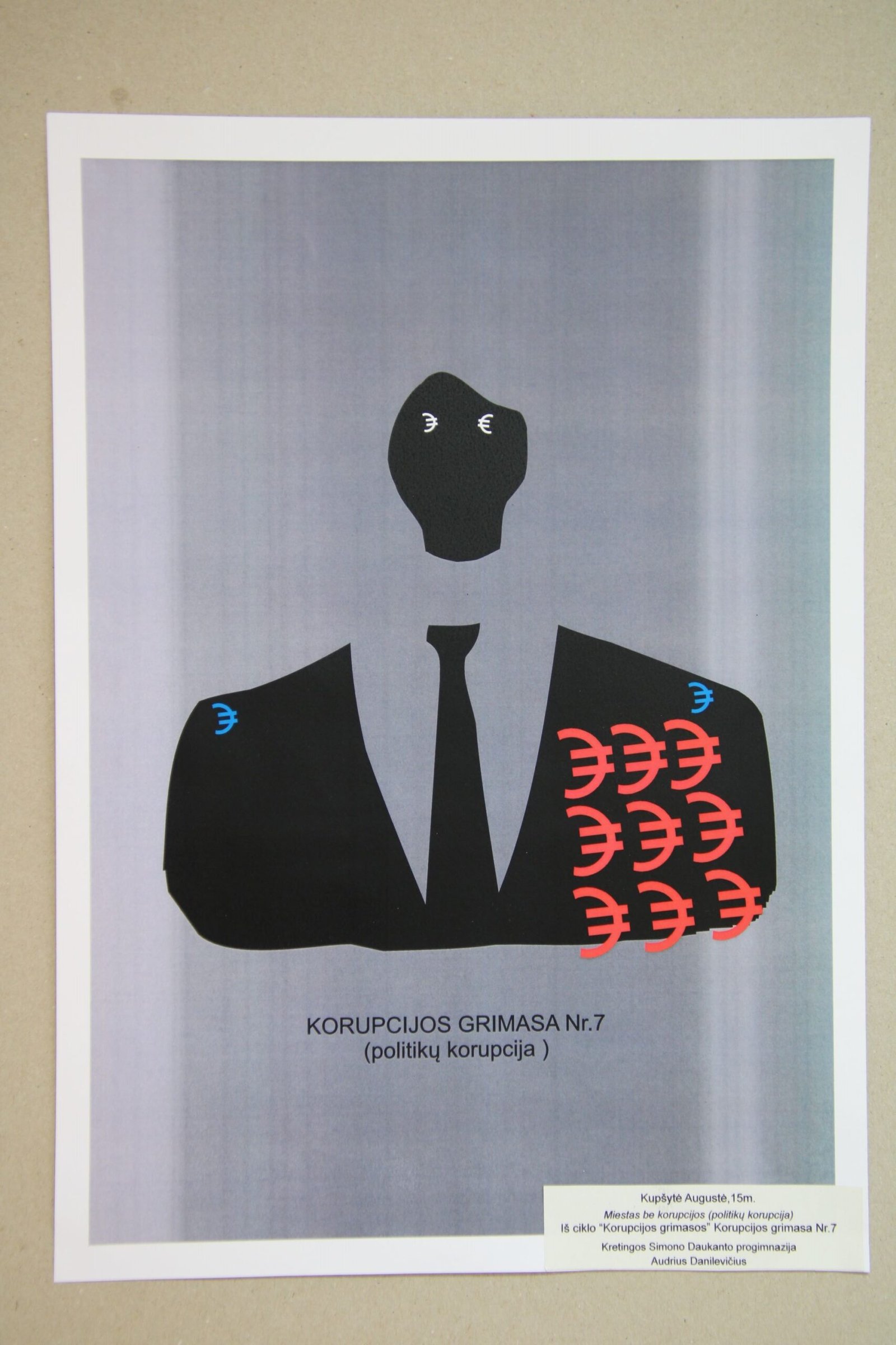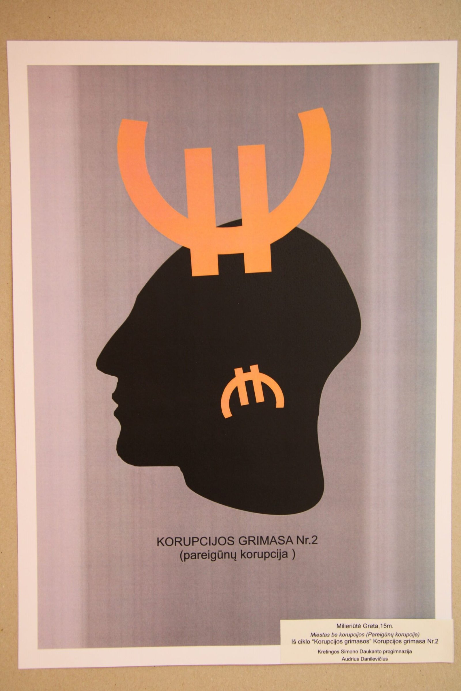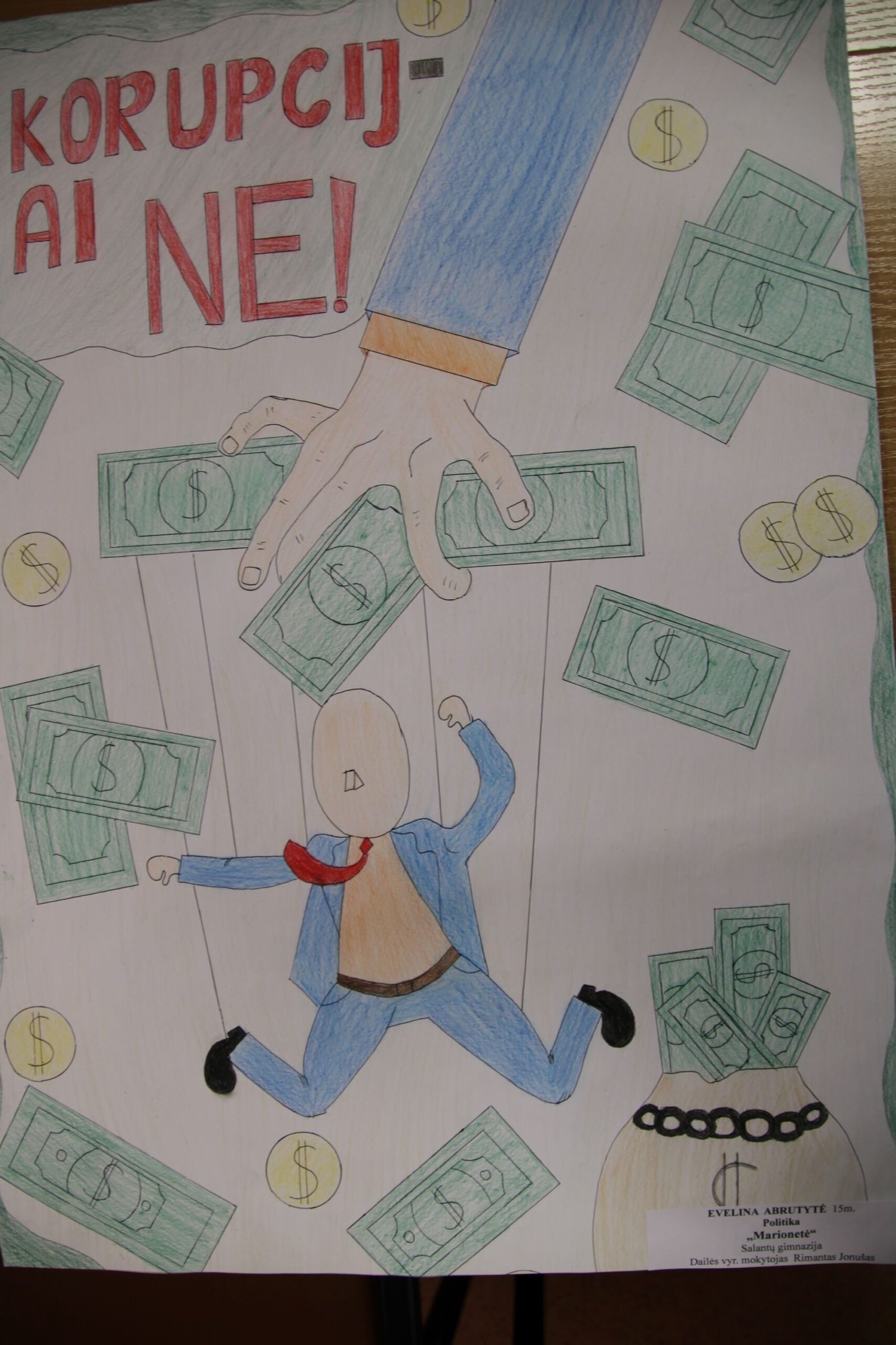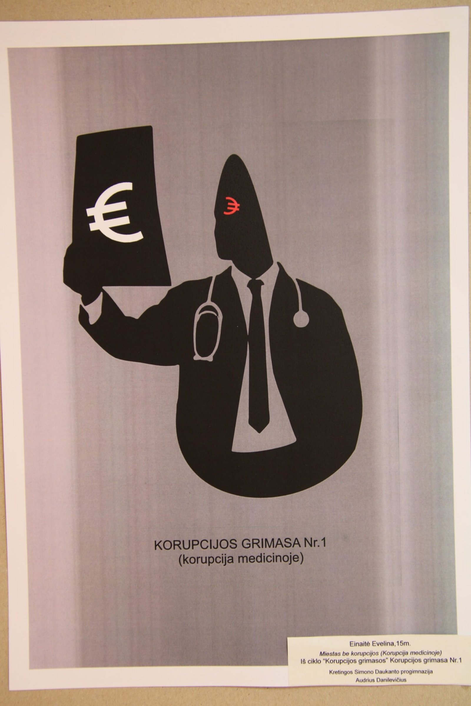 III vieta – Evelinai Einaitei, Kretingos Simono Daukanto progimnazijos mokinei už darbą „Korupcijos grimasos“ (mokytojas Audrius Danilevičius).