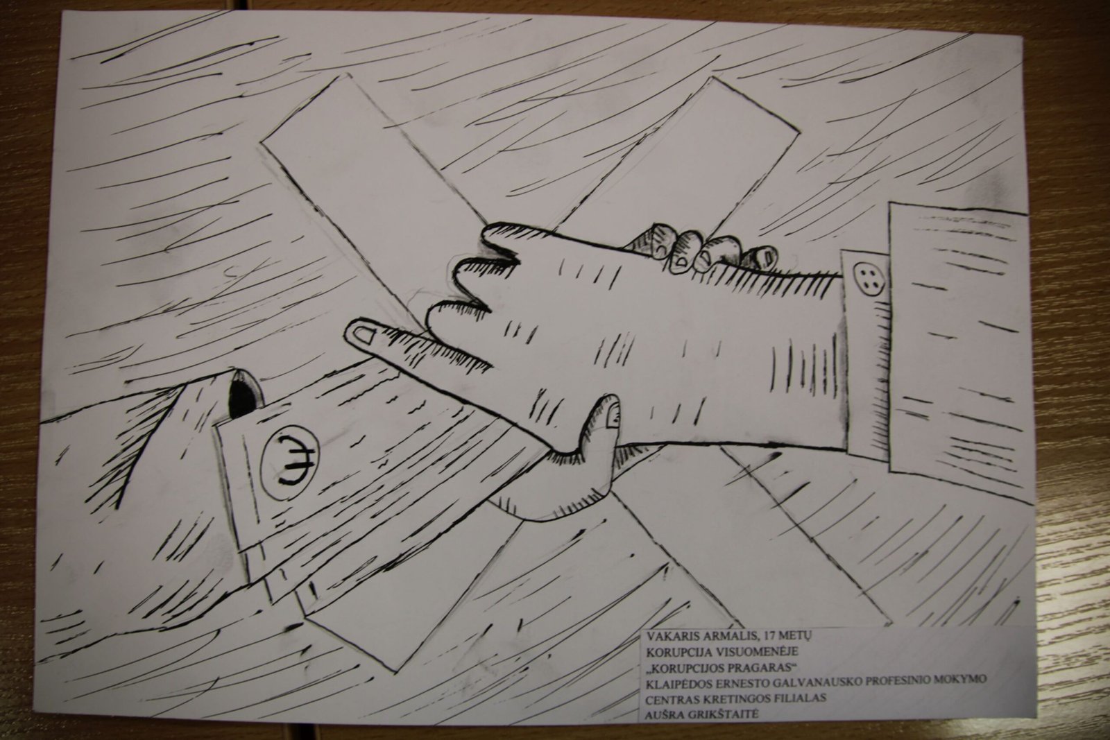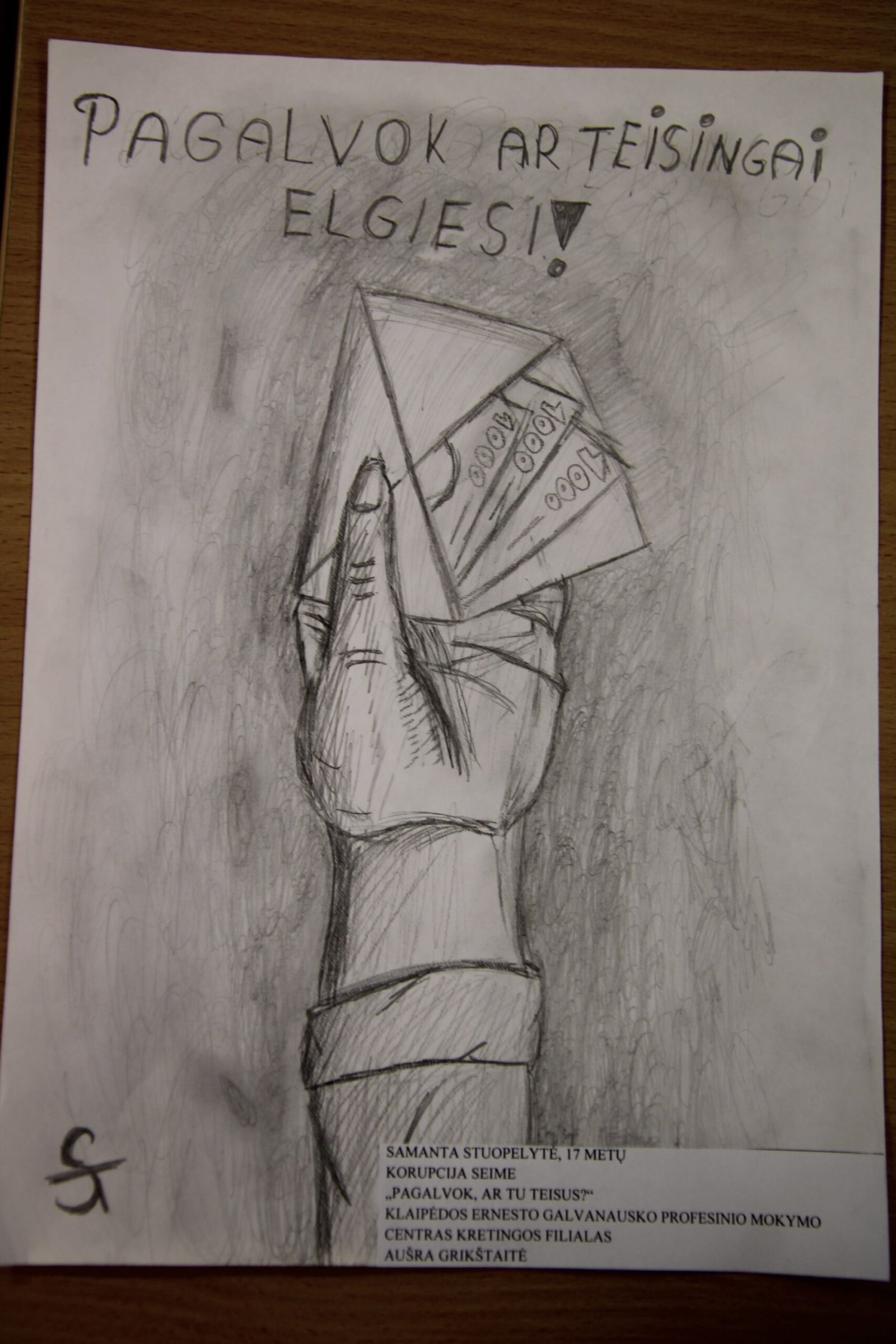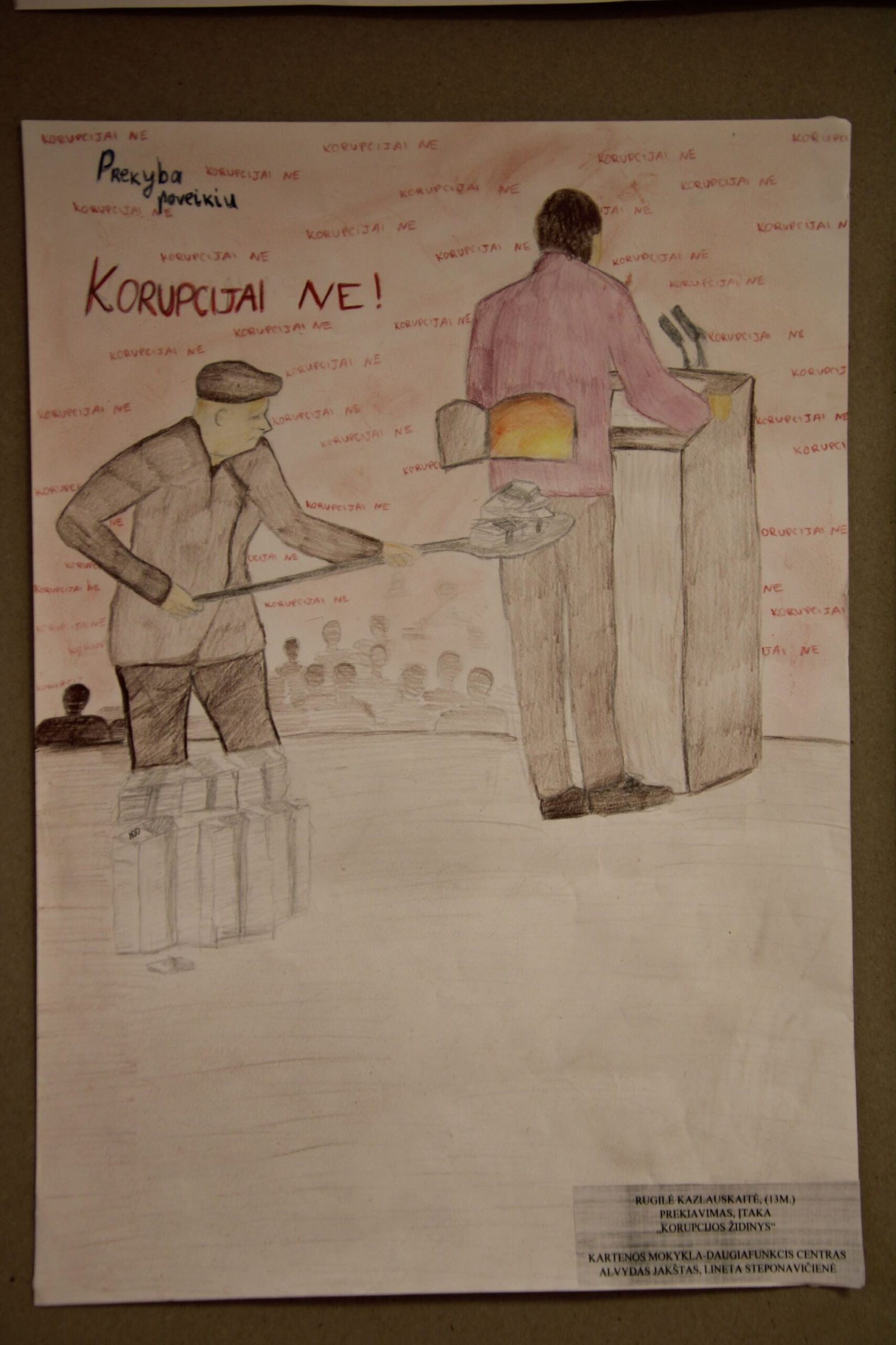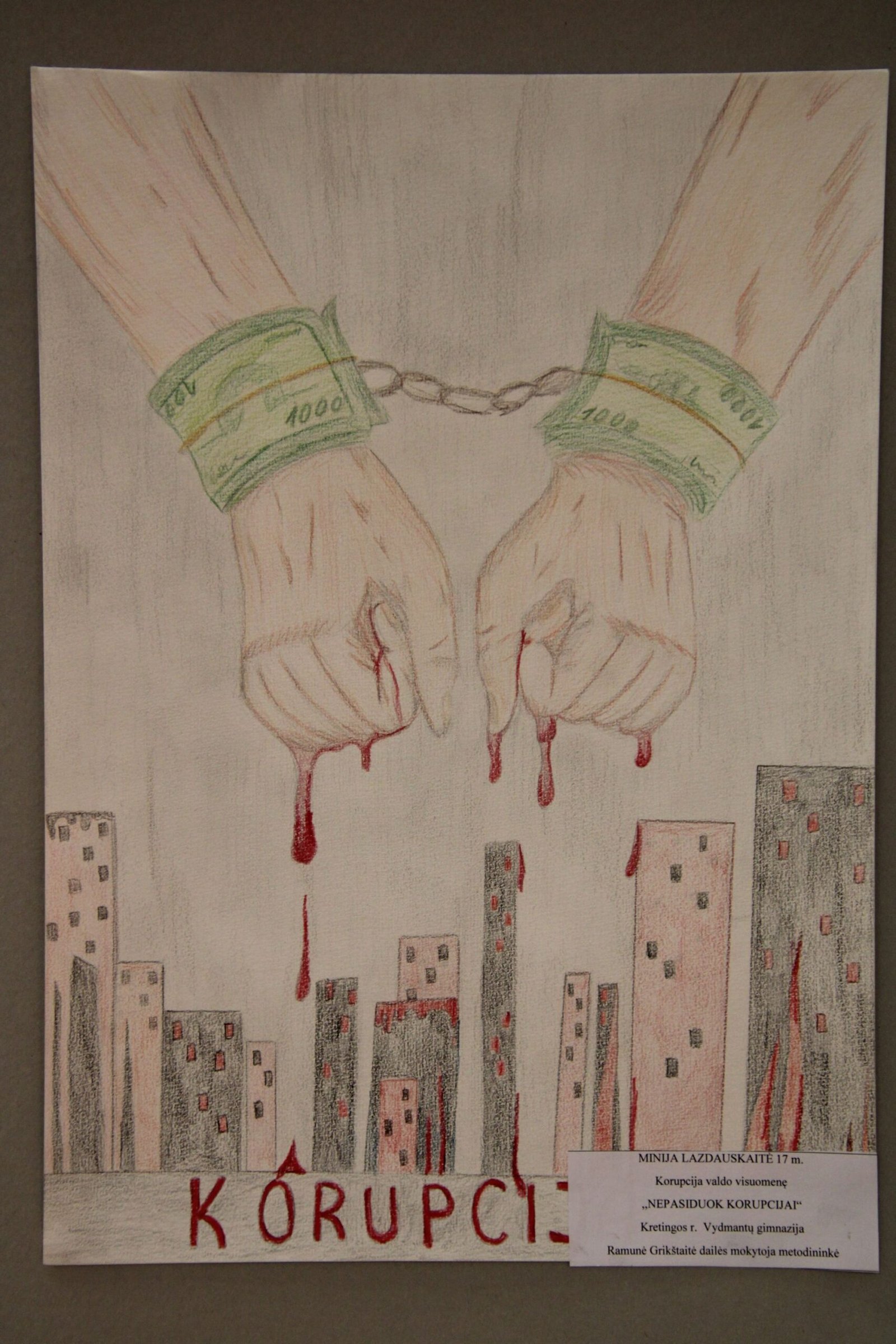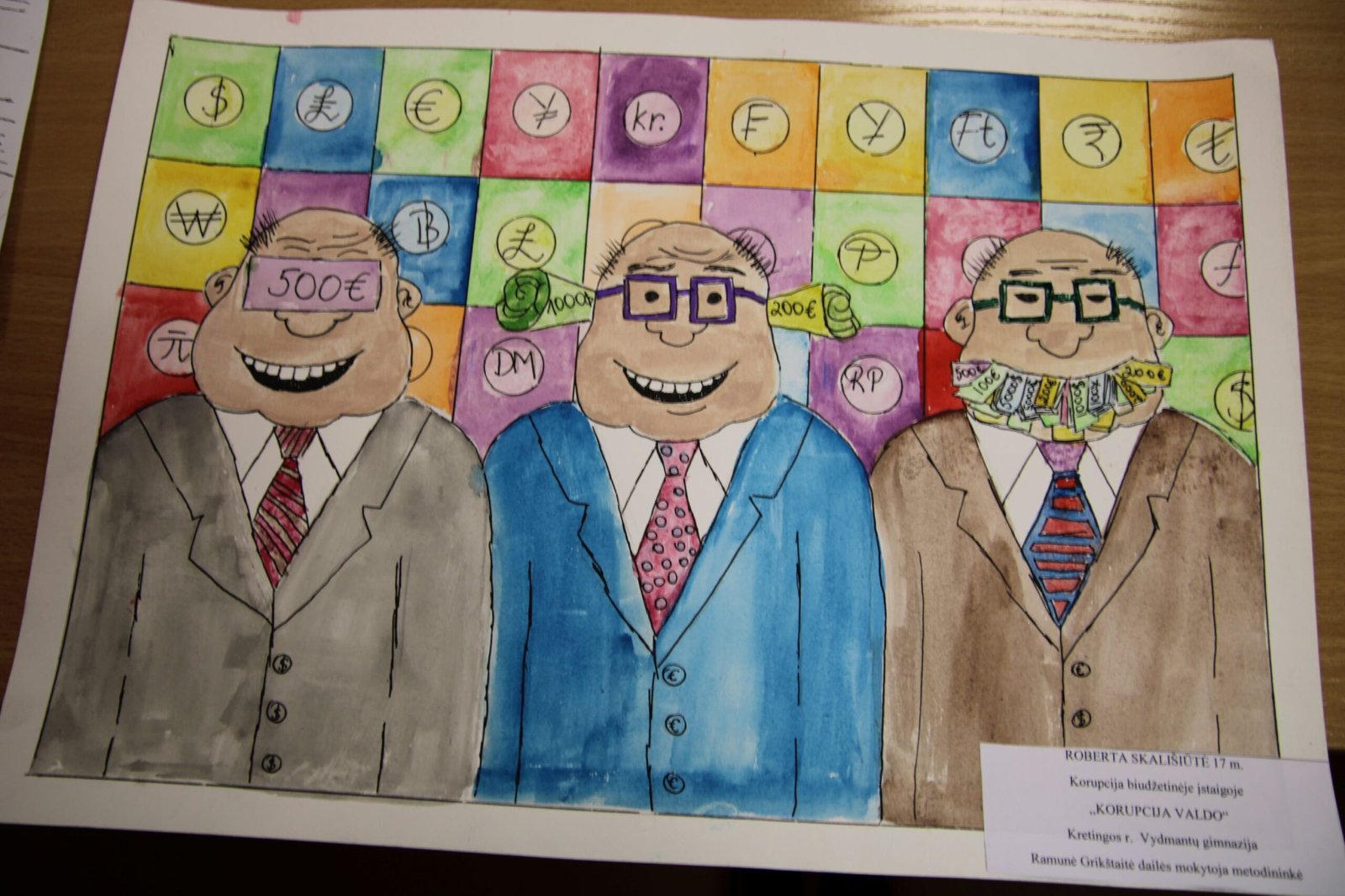 III vieta – Evelinai Einaitei, Kretingos Simono Daukanto progimnazijos mokinei už darbą „Korupcijos grimasos“ (mokytojas Audrius Danilevičius).