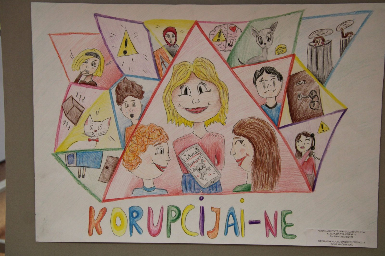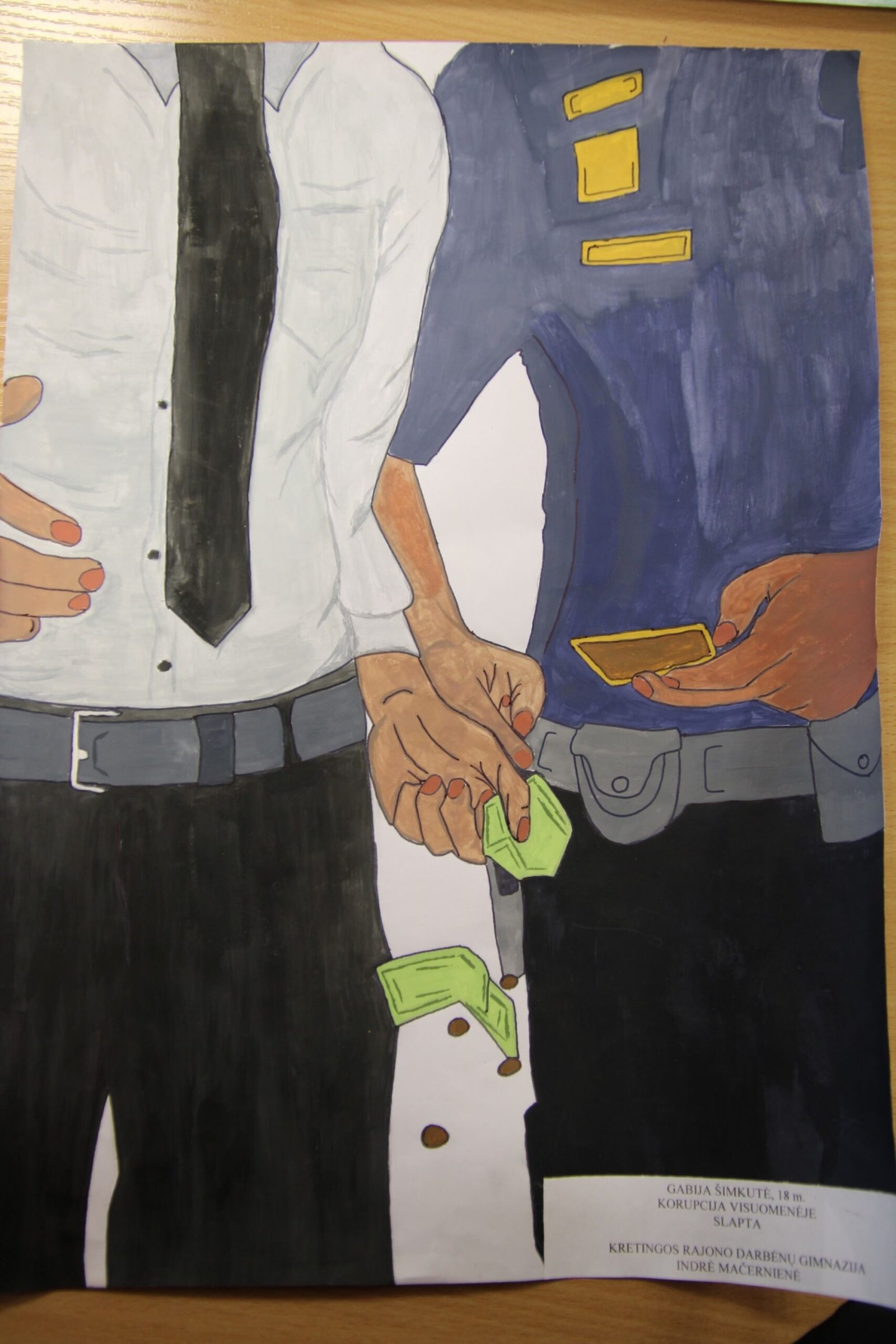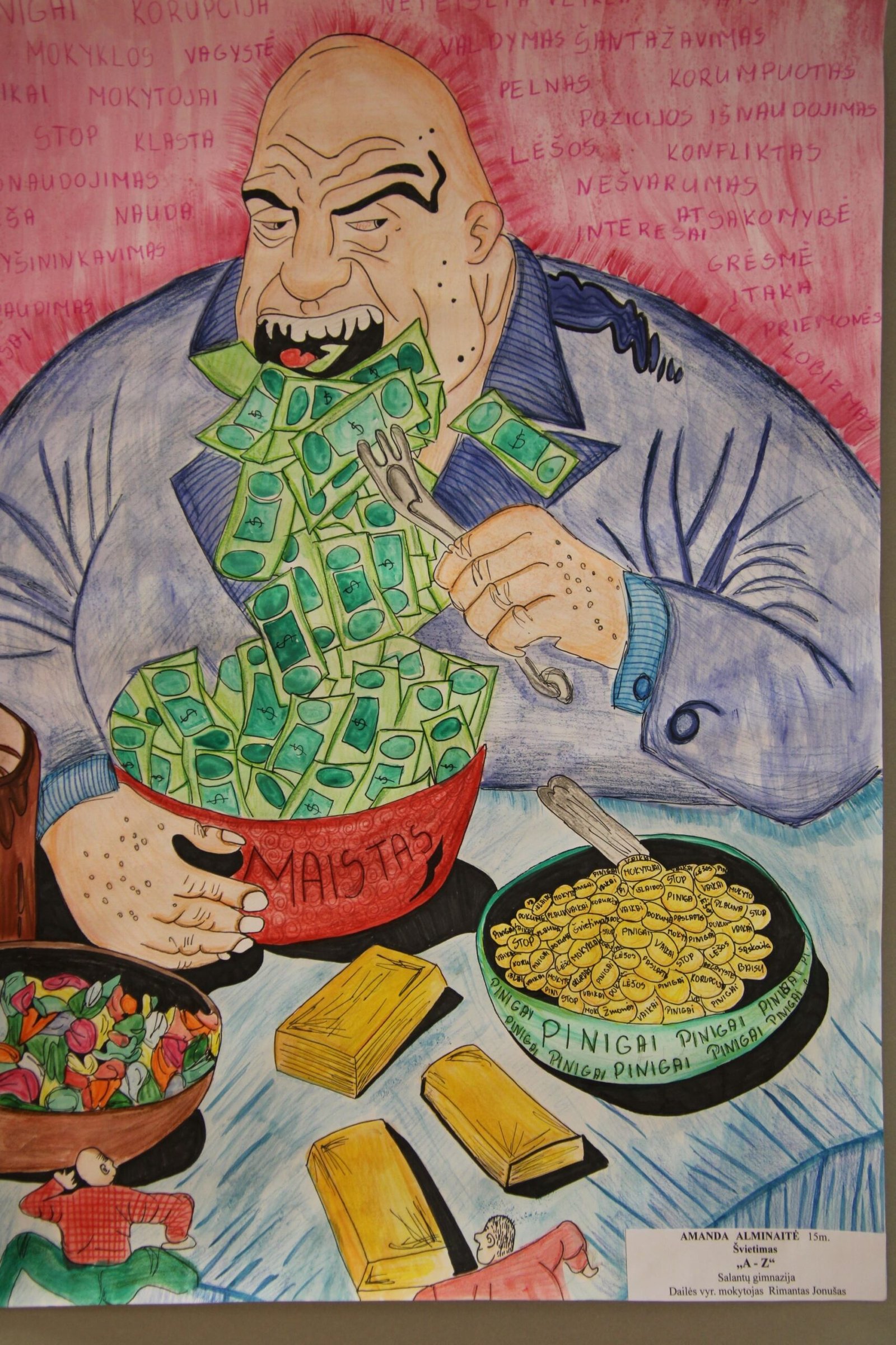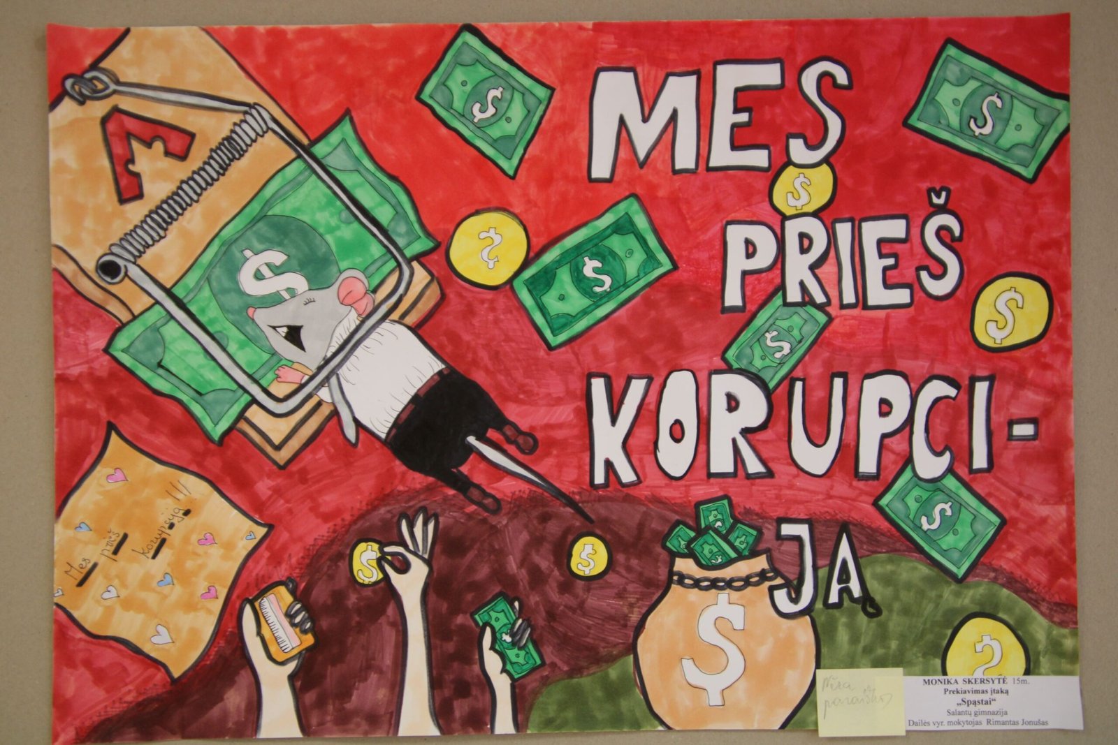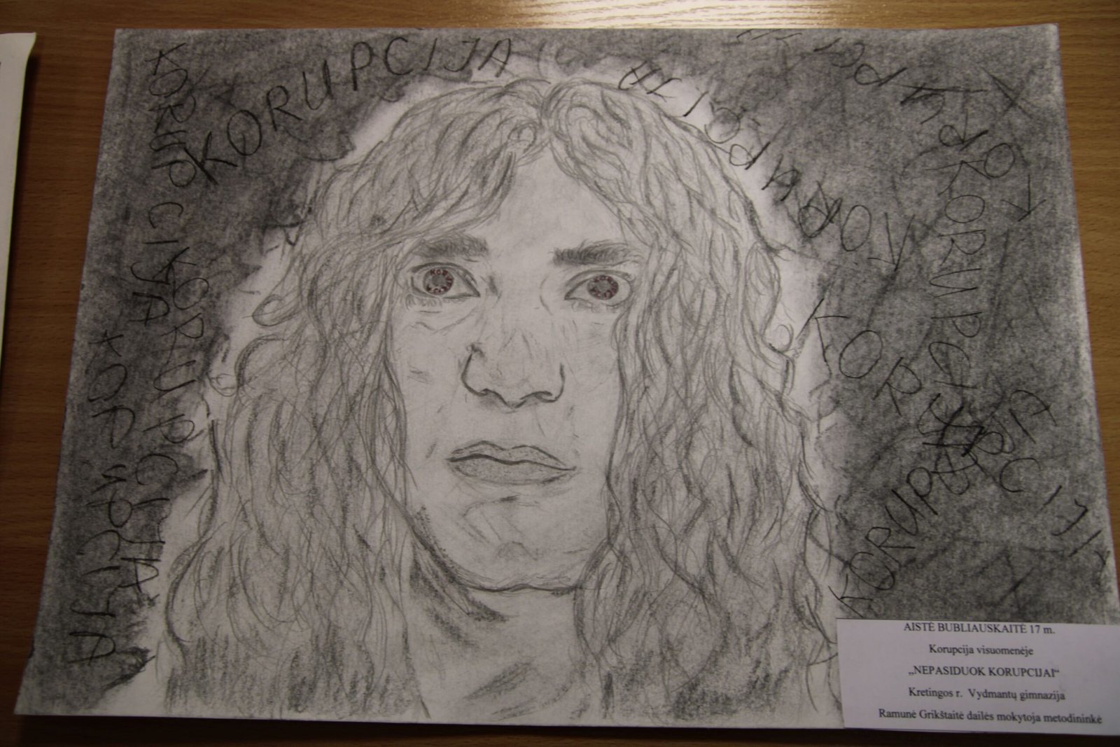 III vieta – Evelinai Einaitei, Kretingos Simono Daukanto progimnazijos mokinei už darbą „Korupcijos grimasos“ (mokytojas Audrius Danilevičius).
