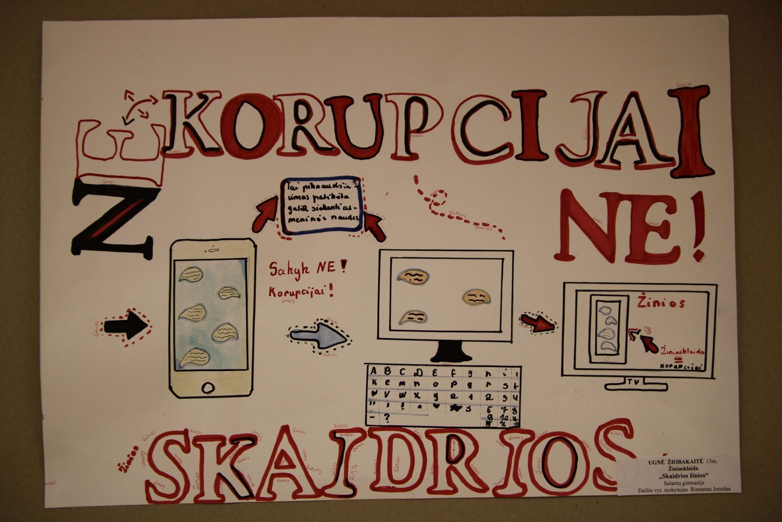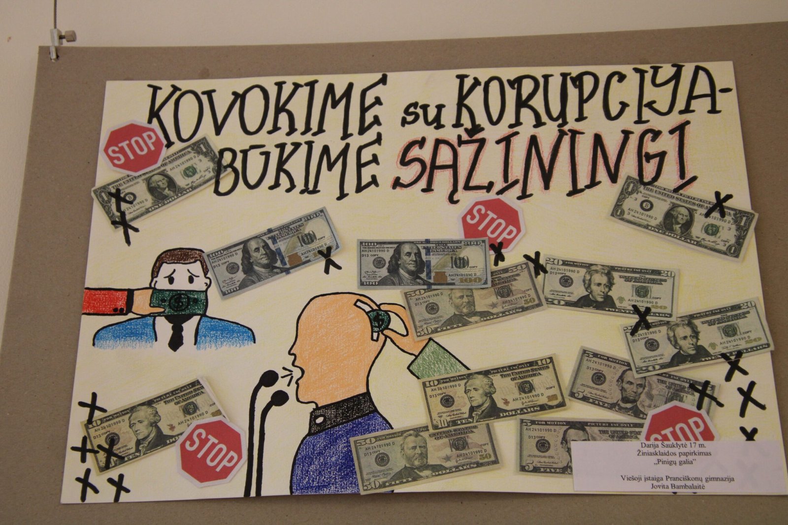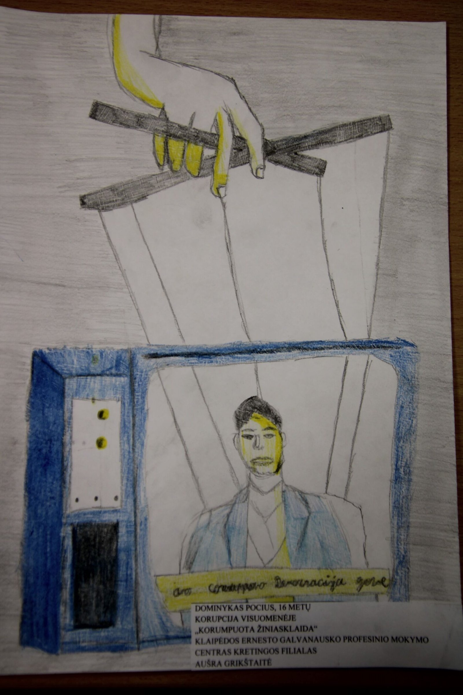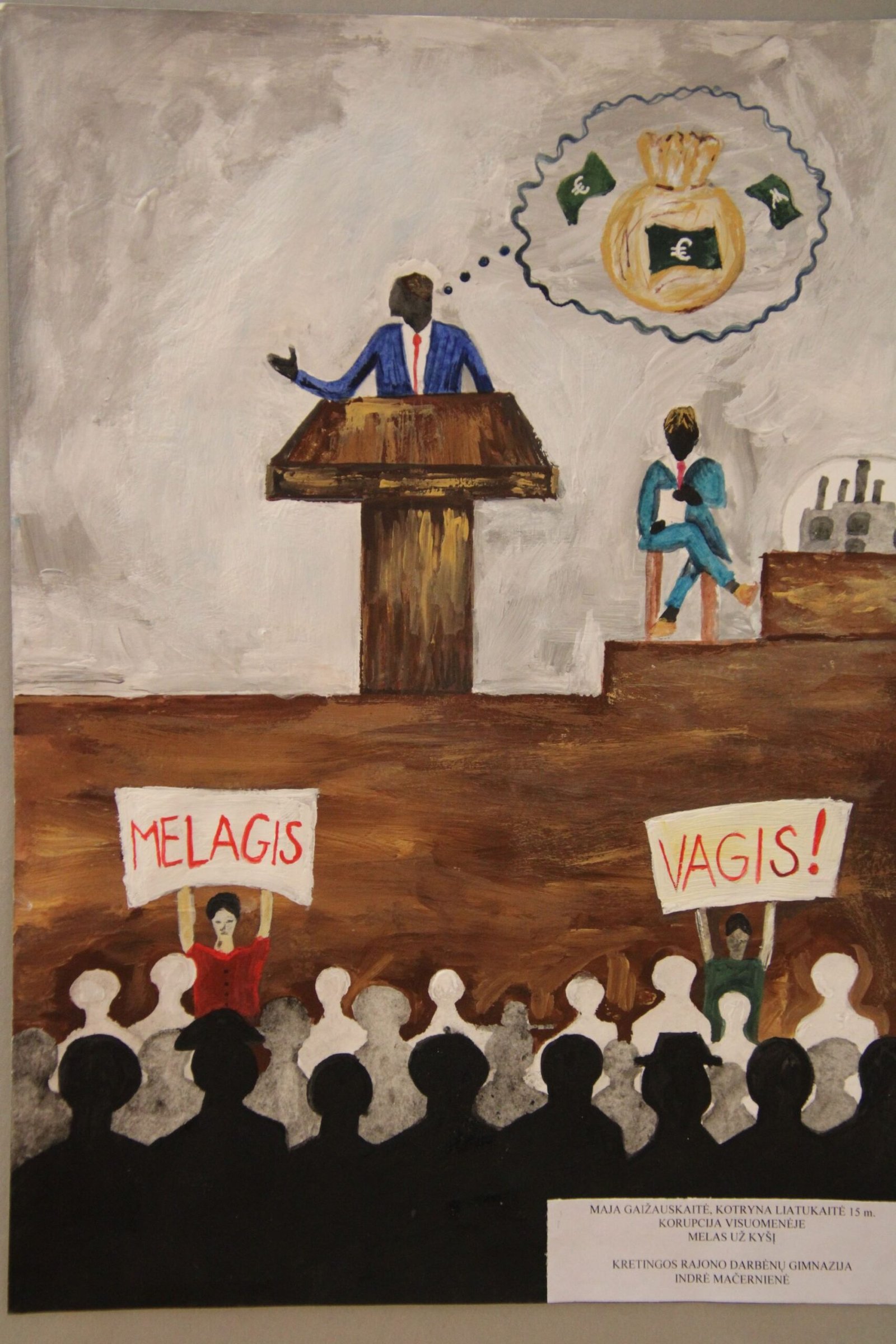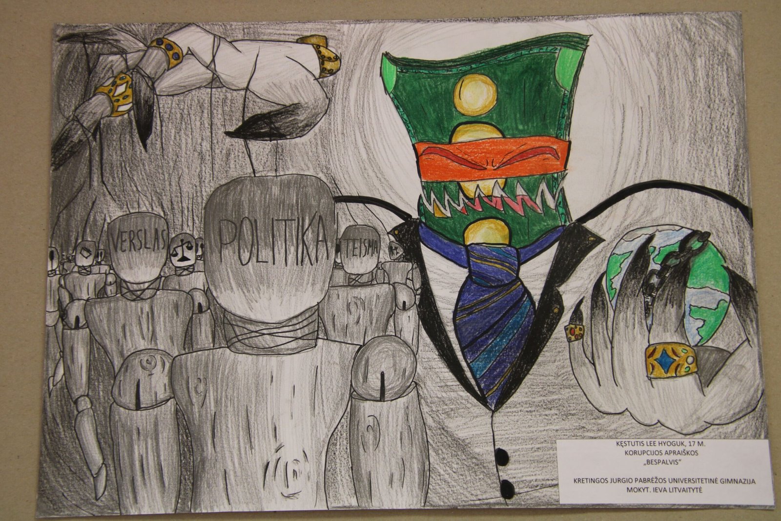 III vieta – Evelinai Einaitei, Kretingos Simono Daukanto progimnazijos mokinei už darbą „Korupcijos grimasos“ (mokytojas Audrius Danilevičius).