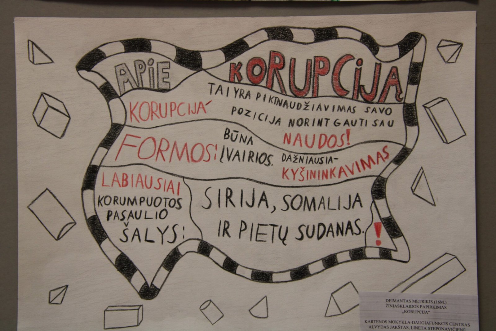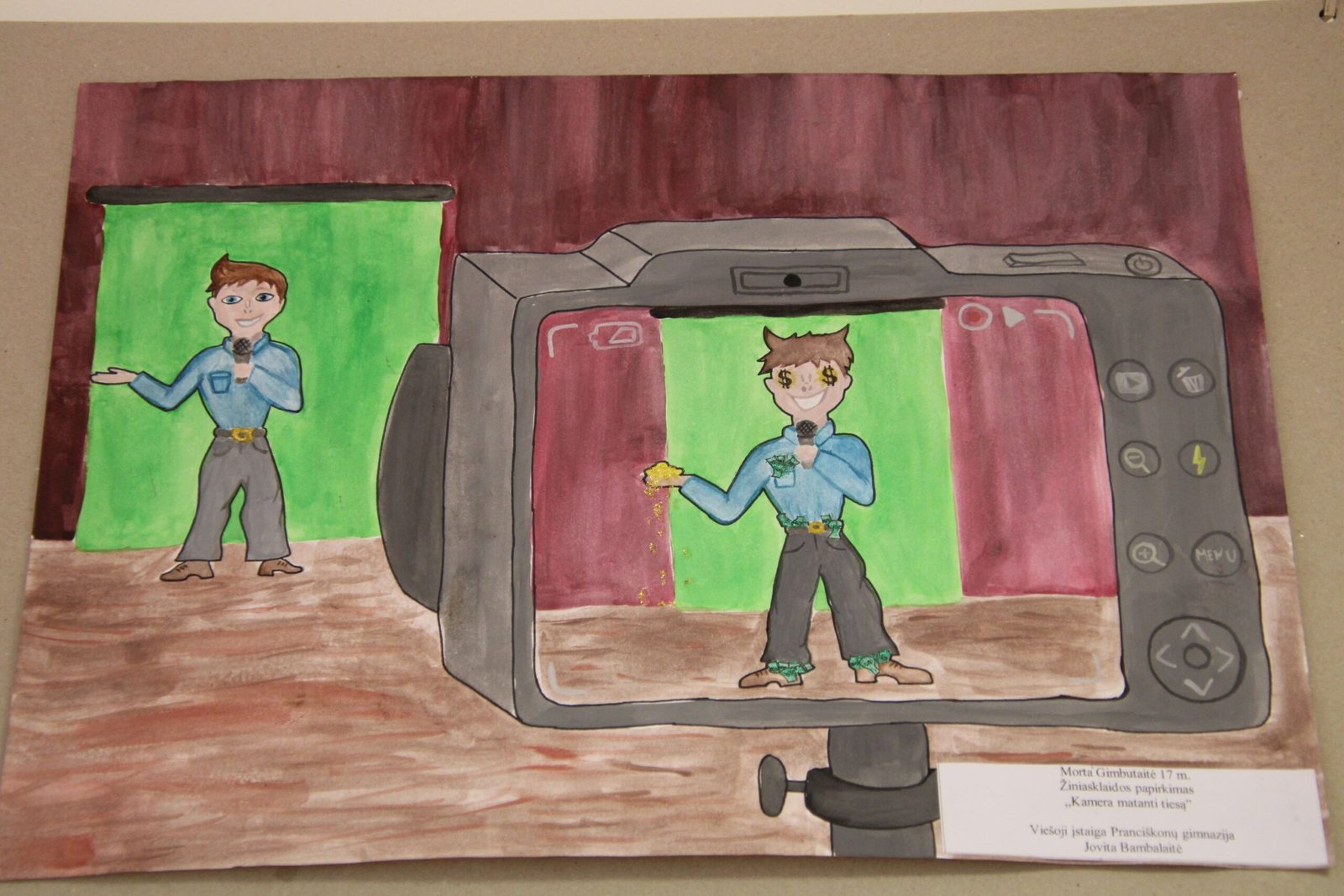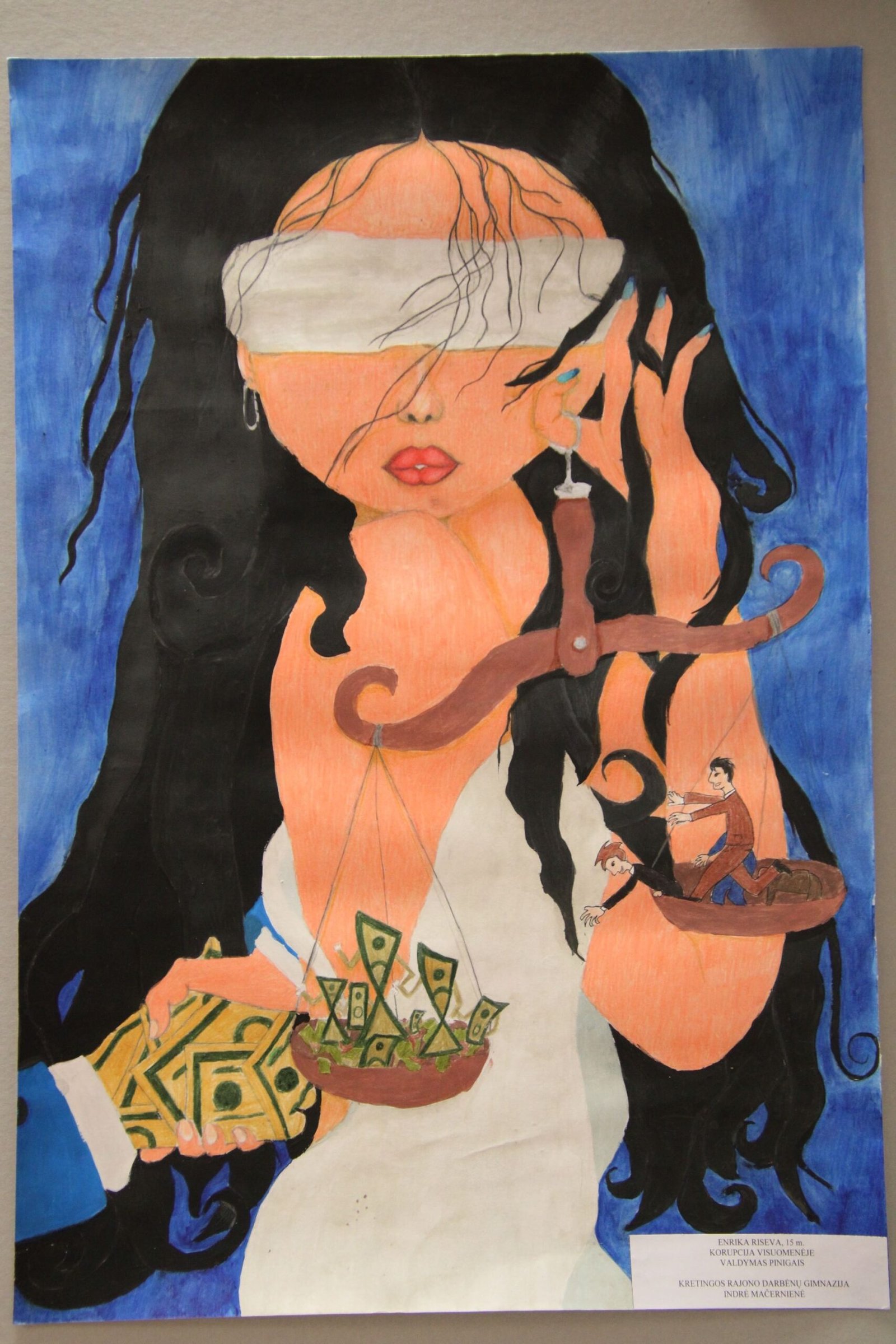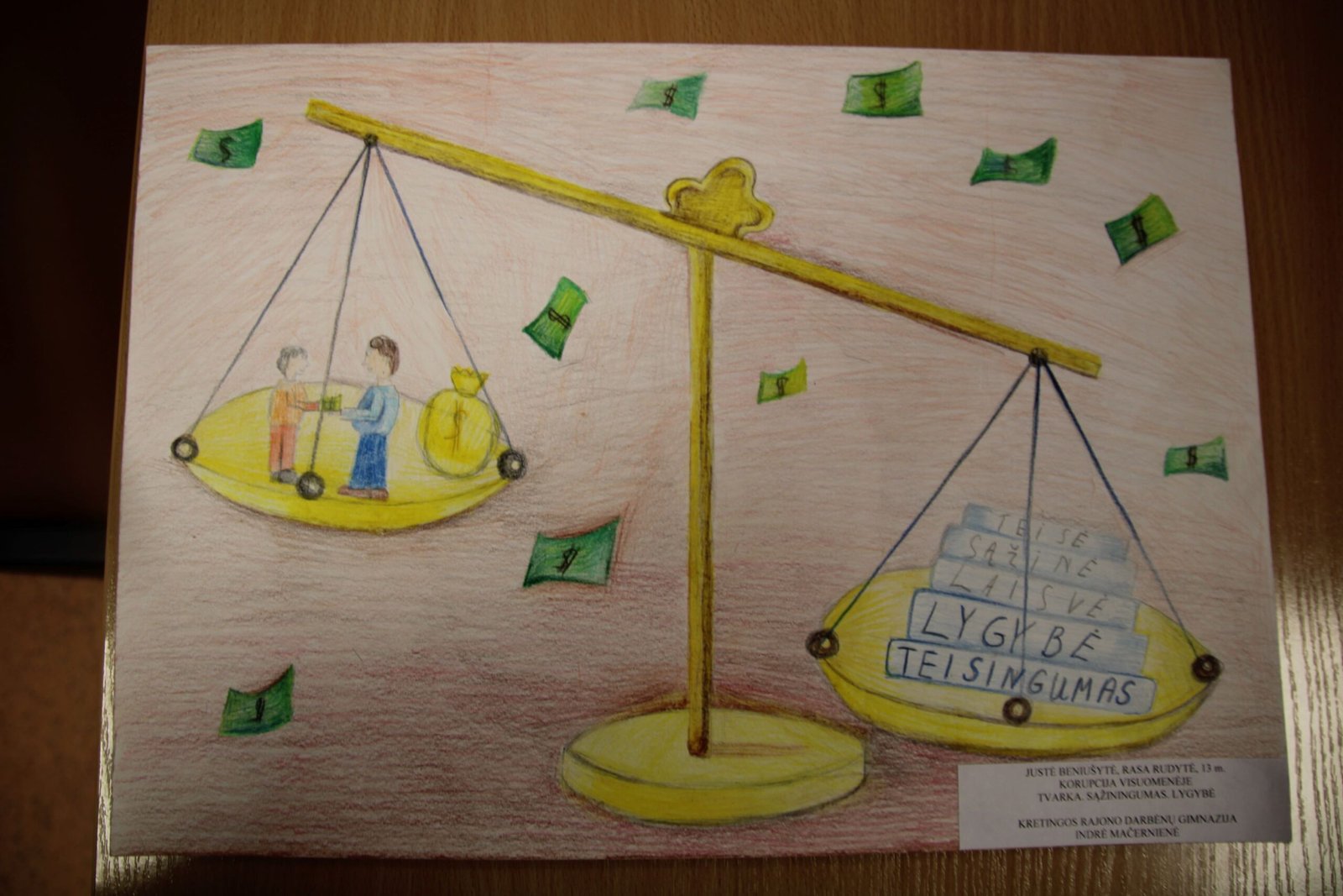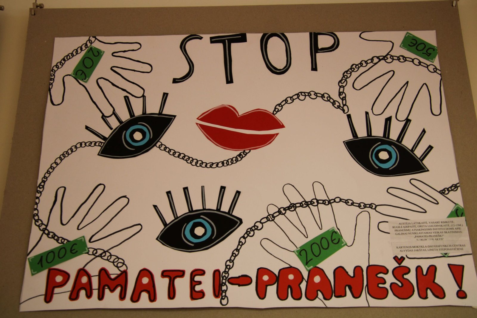 III vieta – Evelinai Einaitei, Kretingos Simono Daukanto progimnazijos mokinei už darbą „Korupcijos grimasos“ (mokytojas Audrius Danilevičius).
