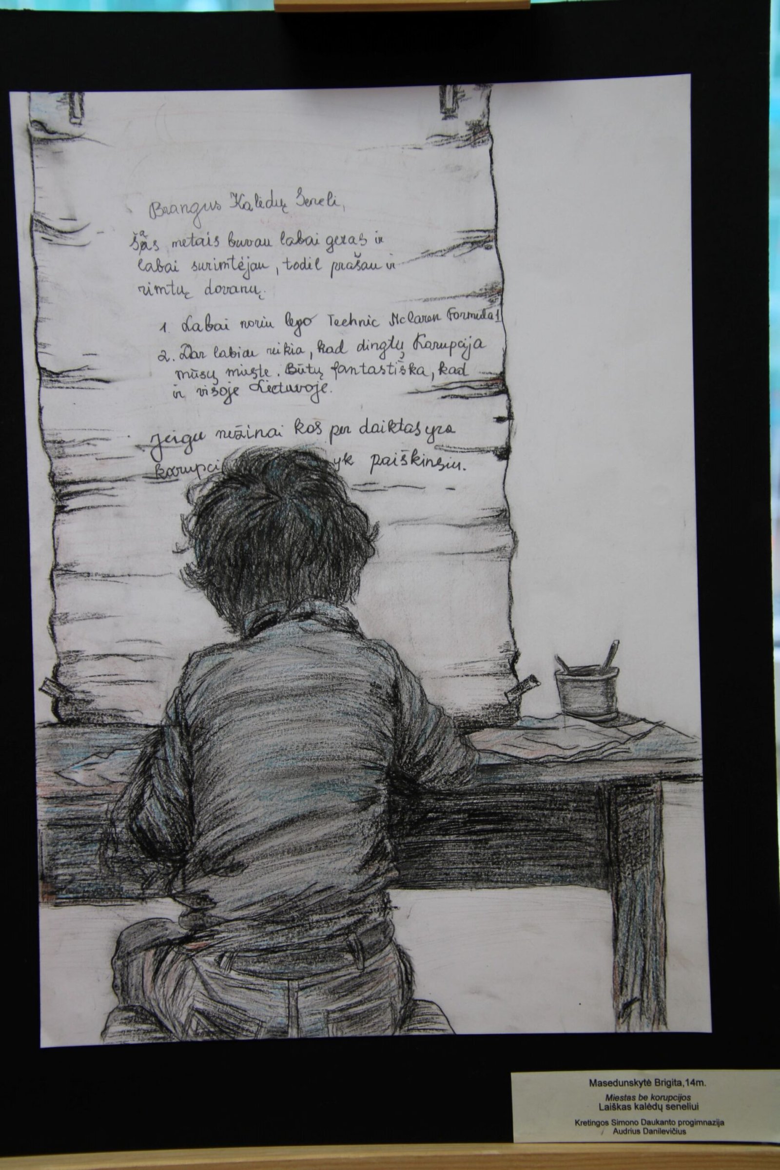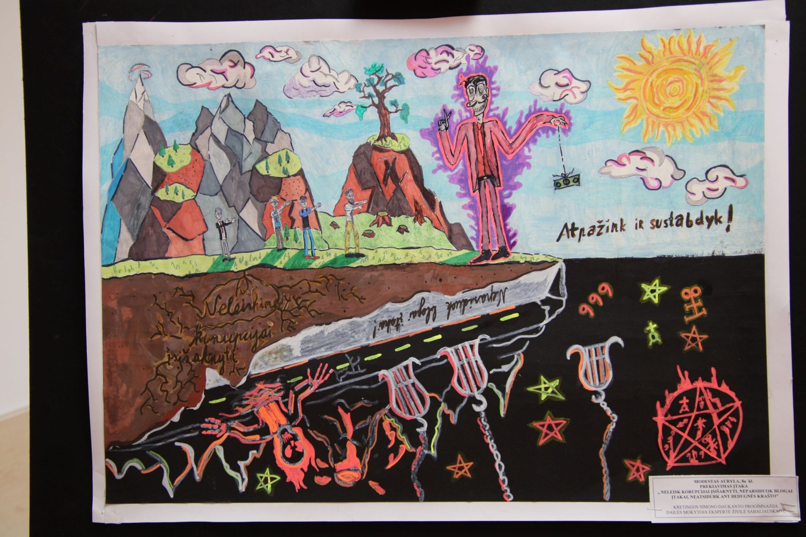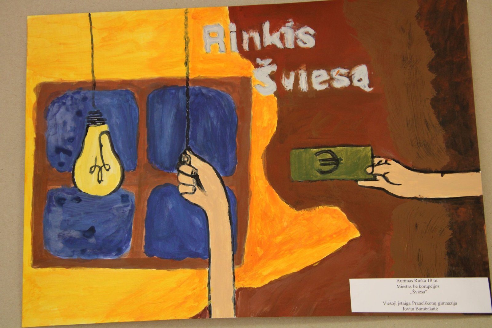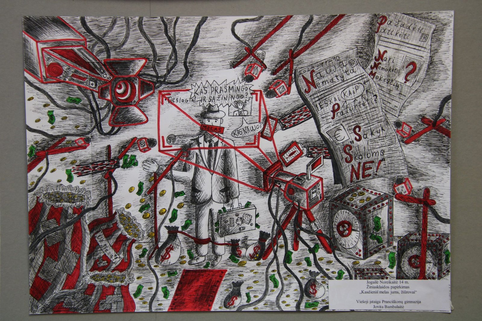 už daugiaplanę kompoziciją – Ugnei Meškelevičiūtei, Kretingos r. Vydmantų gimnazijos mokinei, už darbą „Korupcija“ (mokytoja Ramunė Grikštaitė).