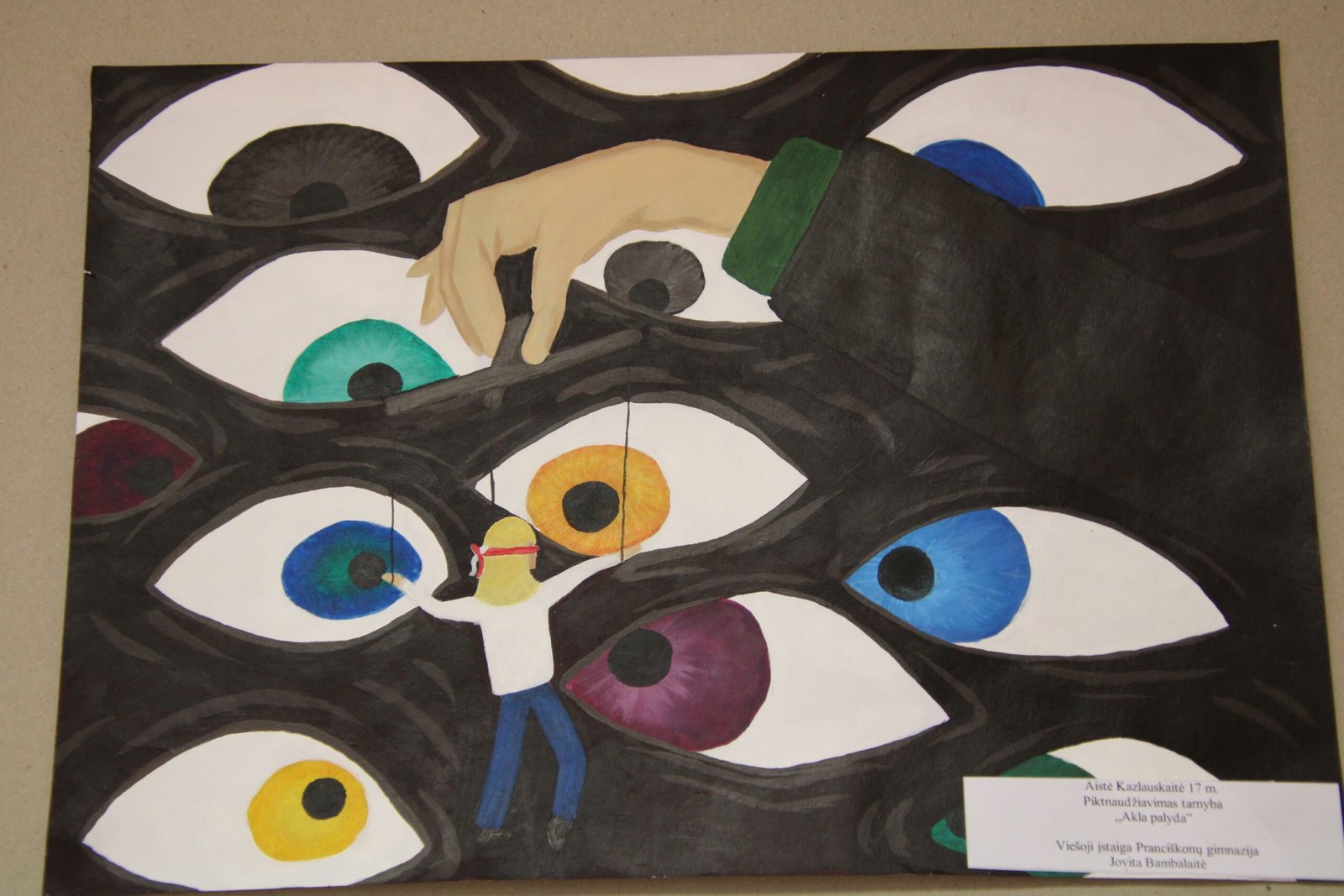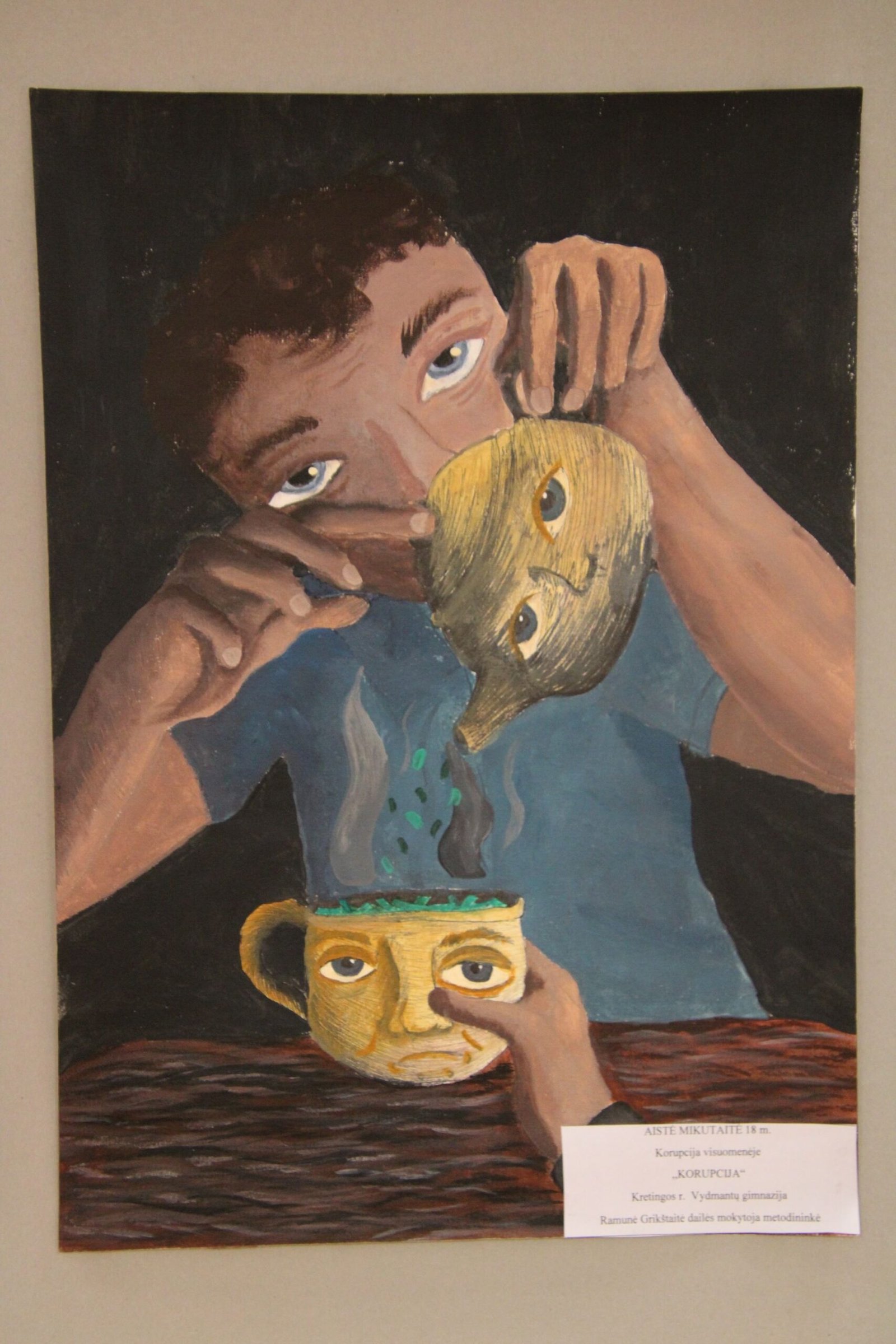 už tapybiškumą – Aistei Mikutaitei, Kretingos r. Vydmantų gimnazijos mokinei už darbą „Korupcija“ (mokytoja Ramunė Grikštaitė);