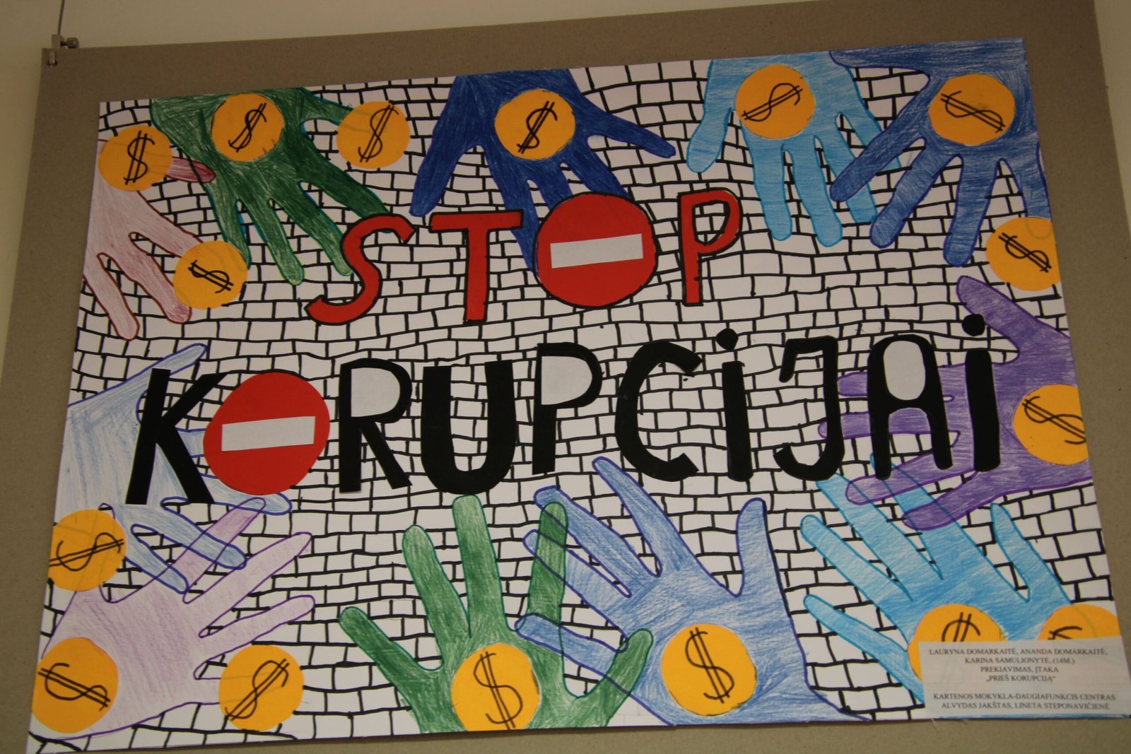 Konkurso organizatoriai pasidžiaugė išaugusiu dalyvių skaičiumi: šiemet konkursui pateikta net 60 kūrybinių darbų iš 9 rajono mokyklų, mokinius ruošė 10 mokytojų. Kretingos rajono švietimo centre surengta piešinių paroda „Mes – prieš korupciją“.