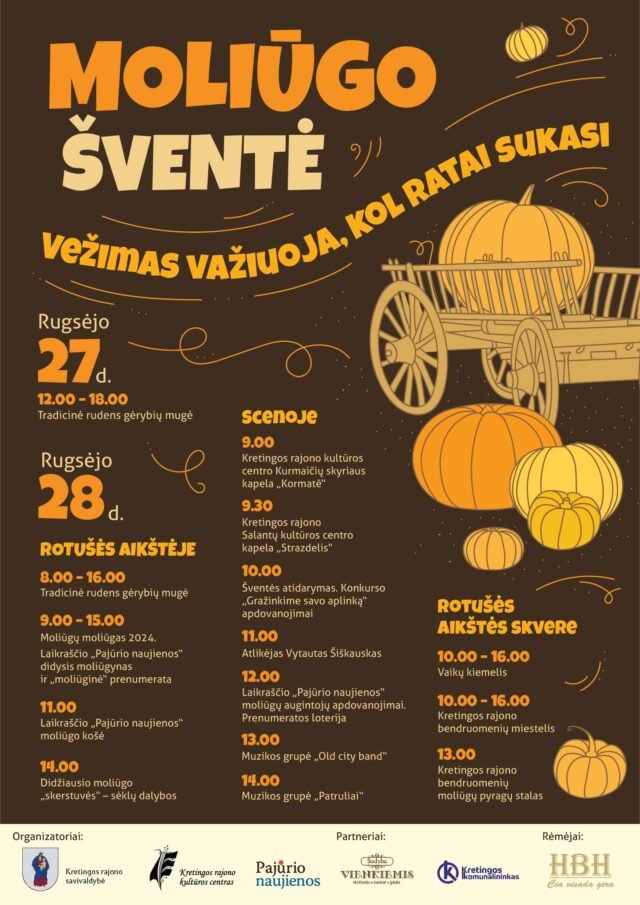 Rudenį vyksianti tradicinė Kretingos miesto šventė rugsėjo 28 dieną žada išlaikyti tradicijas – itin gausią rudens gėrybių mugę. Akcentu liks moliūgas, tačiau kasmet keis šventės įvaizdį ir praplės turinį. Šiemet šventės metu dalyviai galės grožėtis kūrybiškai dekoruotais moliūgais, kurie bus įkomponuoti į senovinių vežimų ar jų dalių dizainus.
