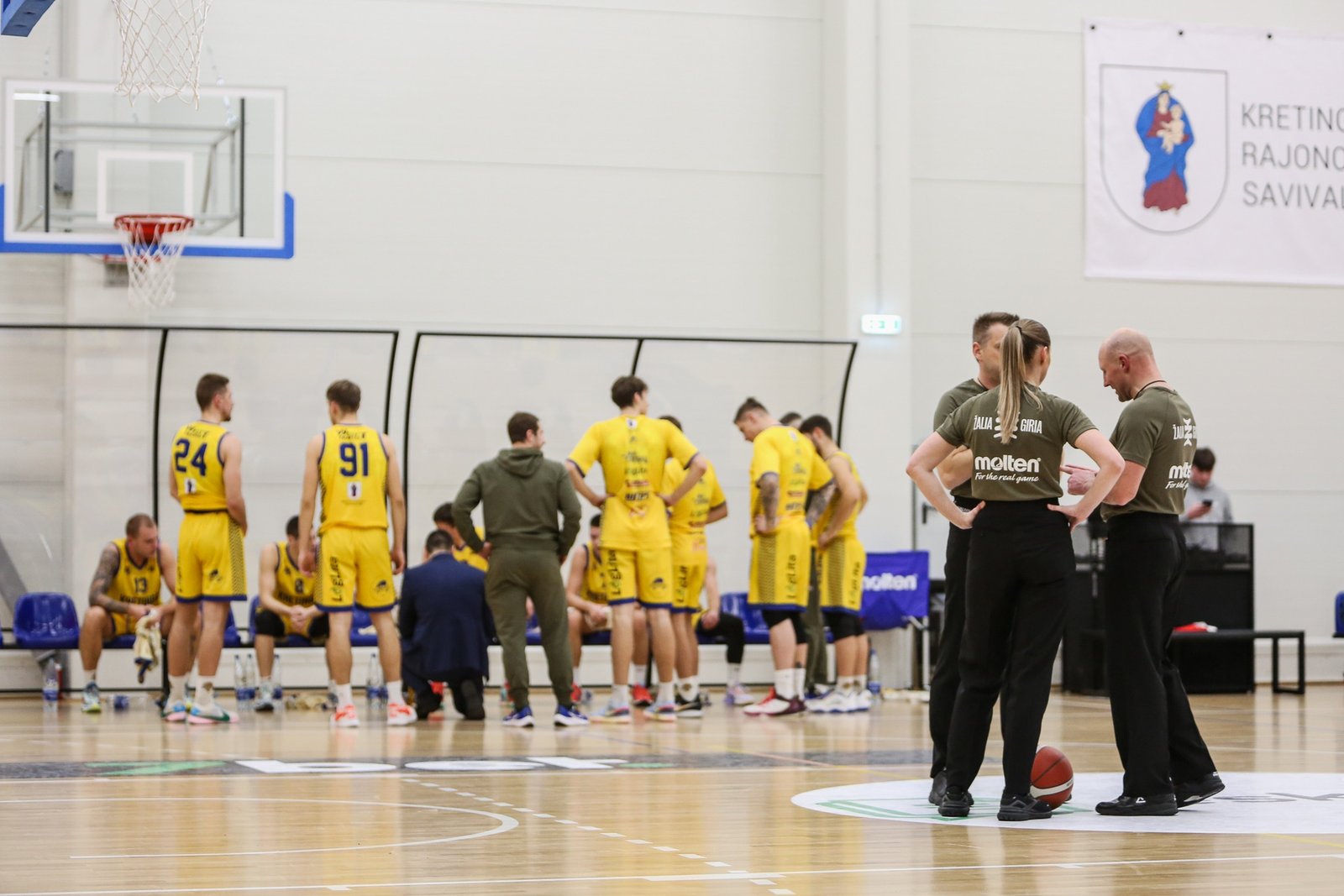 Vis dėlto, prabėgus pusantro kėlinio, 19:5 atkarpą sužaidę kretingiškiai ilgąją pertrauką pasitiko turėdami 14 taškų pranašumą (50:36).