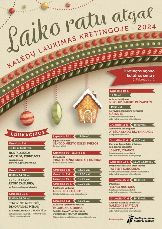 Visi šie renginiai, sujungti į vieną didžiulį Kalėdų laukimo ciklą, Kretingoje kurs ypatingą atmosferą. Miesto gyventojai ir svečiai čia gali pasinerti į magišką šventinį pasaulį, kupiną muzikos, teatro, kūrybos ir nostalgiškų prisiminimų.