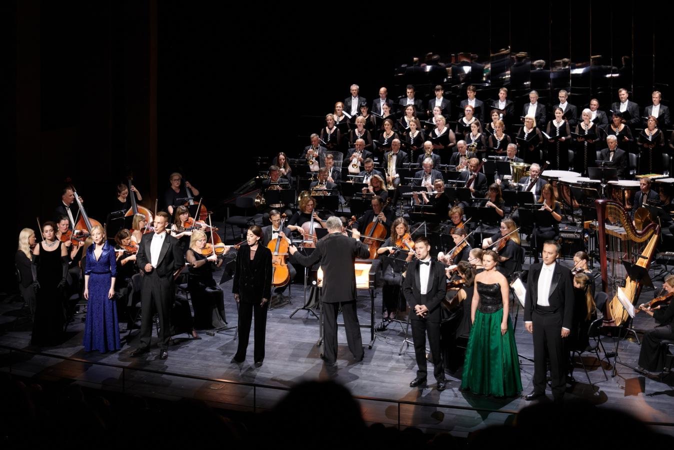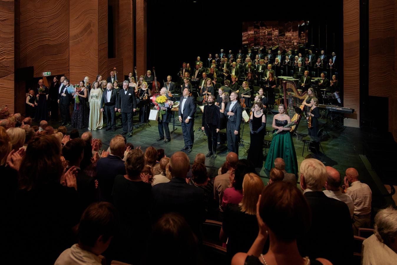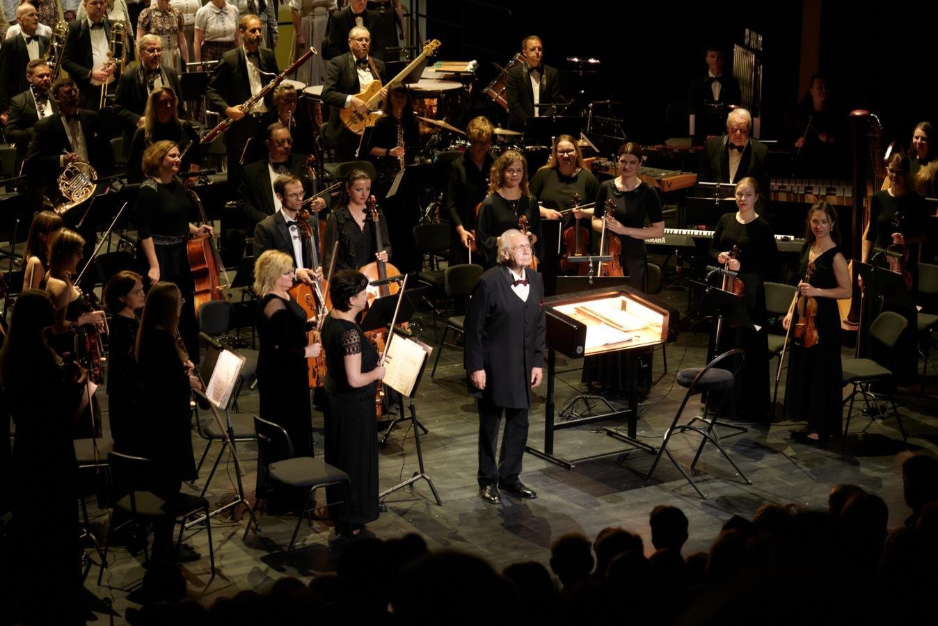 Ant dirigento pakylos sugrįžęs maestro savo jubiliejinį koncertą užbaigė diriguodamas kibirkščiuojantį „Radeckio maršą“.