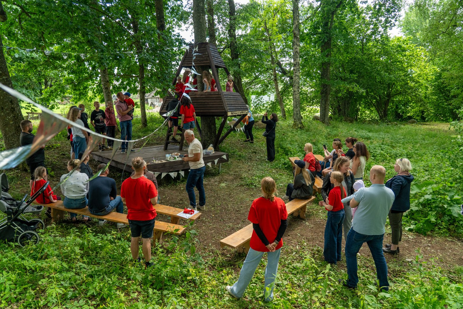 Visai šalia buvusios žvyrduobės, netoli paslaptingojo šulinio ir medžių juosiamos daržinės, penkias dienas Nasrėnuose skleidėsi KAD:MIESTELIAI dirbtuvių kūryba. Čia, bendromis vaikų, savanorių ir bendruomenės jėgomis, buvo sukurtas namelis medyje.