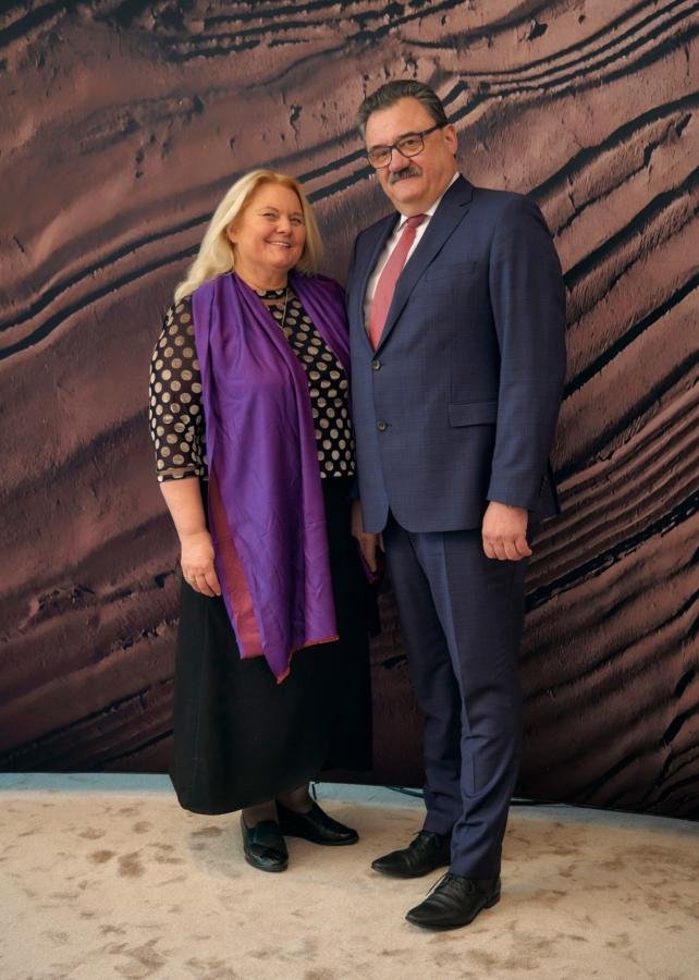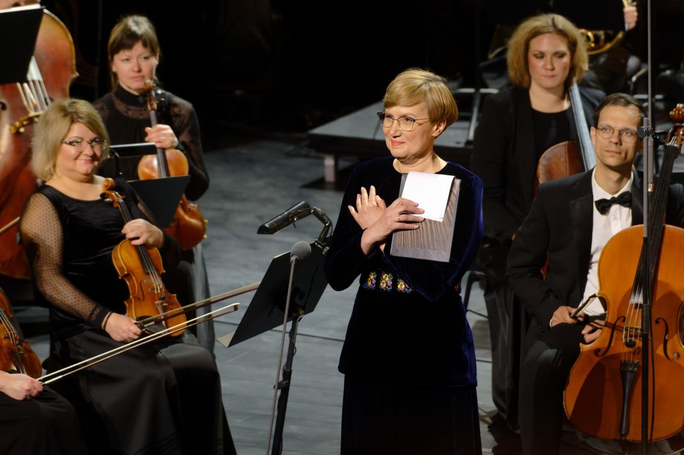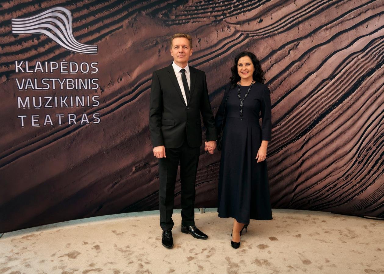 Dr. Jolanta Karpavičienė, prezidento patarėja, susirinkusiems perdavė LR Prezidento Gitano Nausėdos sveikinimus: „Šiandien džiugi diena ir didelė šventė visam miestui ir Lietuvai – daugiau nei po penkerių metų klajonių Klaipėdos valstybinis muzikinis teatras pagaliau grįžta namo, grįžta į „Jūros“ ir „Marių“ sales, kuriose šimtai klausytojų jau netrukus pajus telkiančią įvairių spektaklių bei koncertinių programų jėgą. Tai džiugi žinia kiekvienam tikram muzikos ir teatro gerbėjui, kuris negali įsivaizduoti teatrinės kultūros vakarų tradicijos be Klaipėdos muzikinio teatro. Jau daugiau nei du šimtus metų šis fenomenas formuoja mūsų kultūrinę tapatybę ir savitomis spalvomis praturtina kultūrinį gyvenimą visoje Lietuvoje. Nuo pat pirmųjų teatro pastatymų iki mūsų ausyse ir akyse vis dar skrajojančio „Skrajojančio olando“, kiekvieną kartą įsitikiname šio teatro kūrėjų vaizduote, profesionalumu ir savitumu. Žinia apie tai sklinda toli už mūsų šalies ribų. Ir atrodo ne tik gražu ir tikslinga, kad aukščiausio lygio infrastruktūra kuriama ne tik Vilniuje. Kokybiškos, įvairialypės kultūros mums reikia visoje šalyje. Tegu šiandien skambantys plojimai būna mūsų visų padėkos ir pasididžiavimo ženklas!“