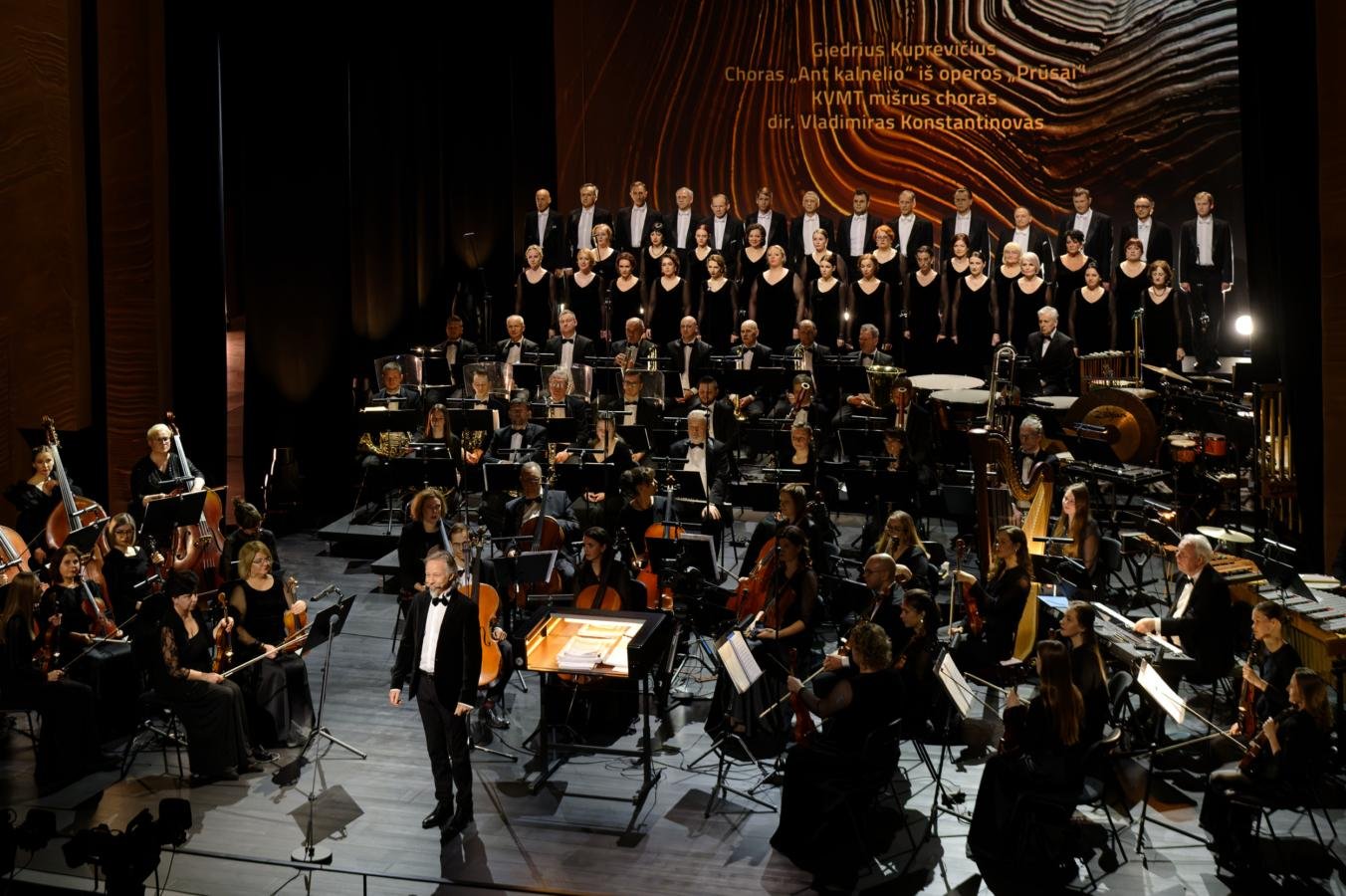 Koncerte skambėjo ištrauka iš pirmojo nacionalinio kūrinio, pastatyto Klaipėdoje šaliai atgavus nepriklausomybę – Giedriaus Kuprevičiaus operos „Prūsai“. Prie dirigento pulto stojo kompozitorius, vyriausiasis chormeisteris, teatre dirbantis daugiau nei trisdešimt metų – Vladimiras Konstantinovas.