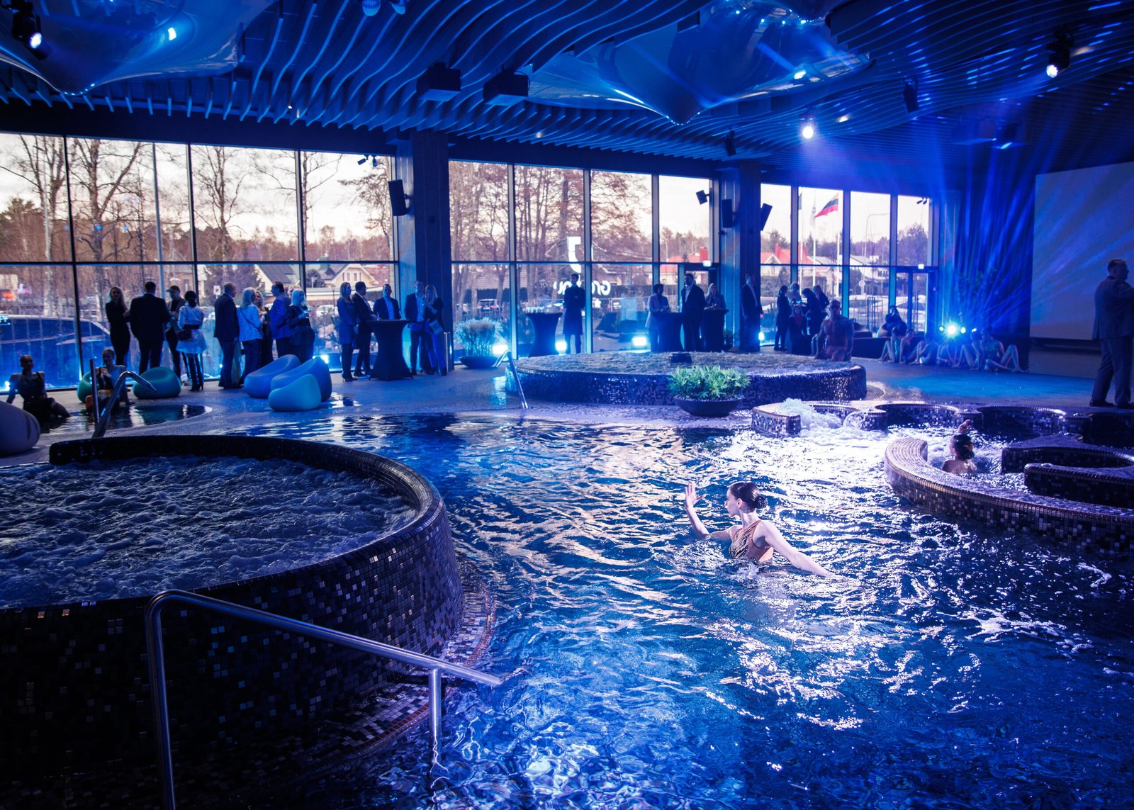 Gradiali baseinų atidarymo renginio vedėjais tapo Vytautas Rumšas Jaunesnysis ir aktorė Ineta Stasiulytė. Susirinkusius svečius stebino ne tik naujos erdvės, tačiau ir gausus būrys sinchroninio plaukimo, šokio ir muzikos artistų, kurie kūrė išskirtinius, naujai erdvei skirtus pasirodymus, o vakarienės metu svečius į netikėtą muzikinę meilės istoriją įtraukė restorano personalu persirengę operos solistai.