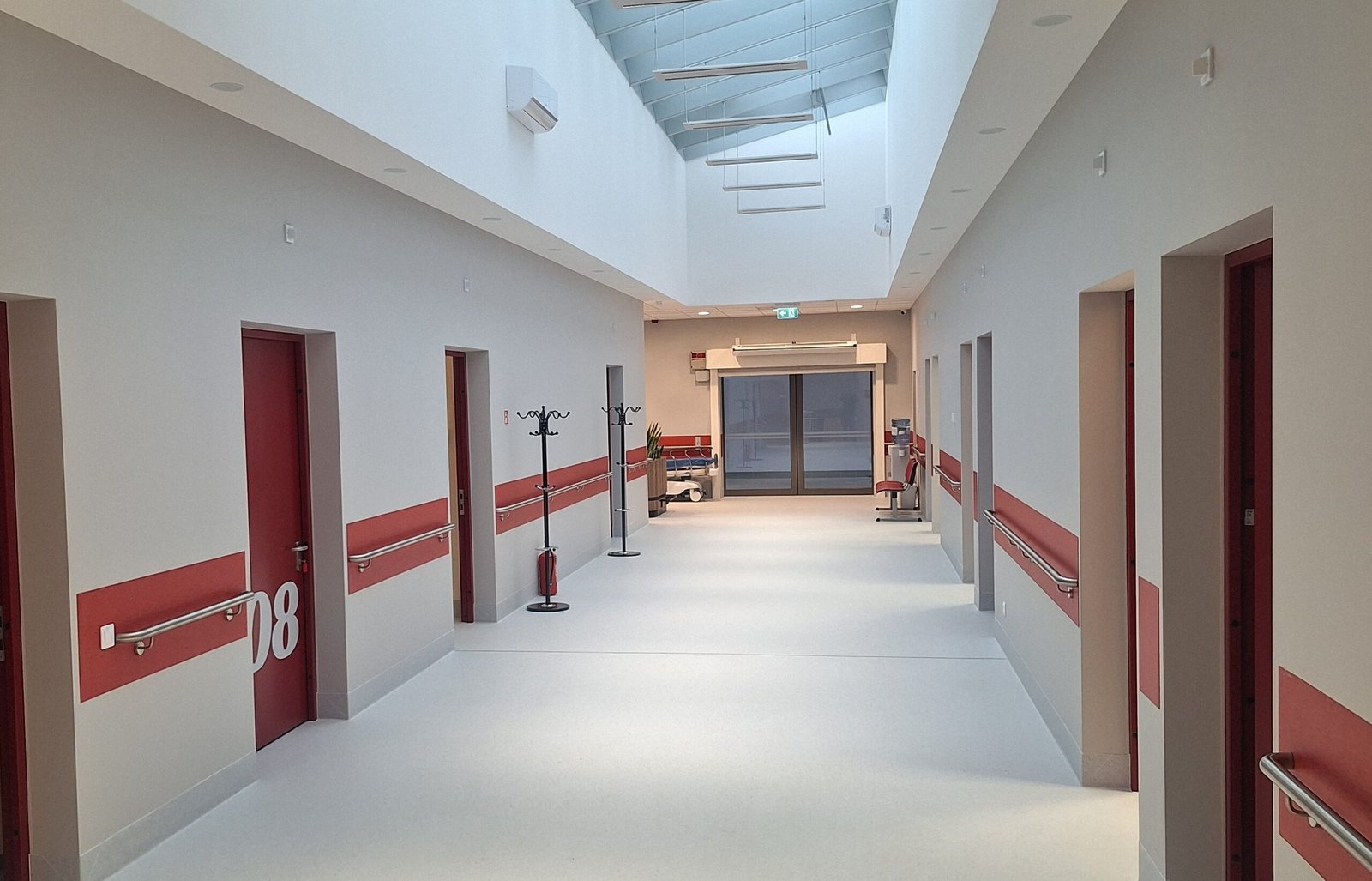 Beveik 500 kv. metrų ploto priestate įrengta pacientų laukiamojo zona, stebėjimo palata, vaikų apžiūros, procedūrų, tvarstomasis, intensyvios terapijos, vidaus ligų, chirurgų, traumatologų kabinetai, sanitarinė patalpa ir sanitariniai mazgai. Naujajame priestate įrengta ir speciali patalpa greitosios medicinos pagalbos automobiliui, iš kurios galima tiesiogiai patekti į pacientų laukimo zoną.
