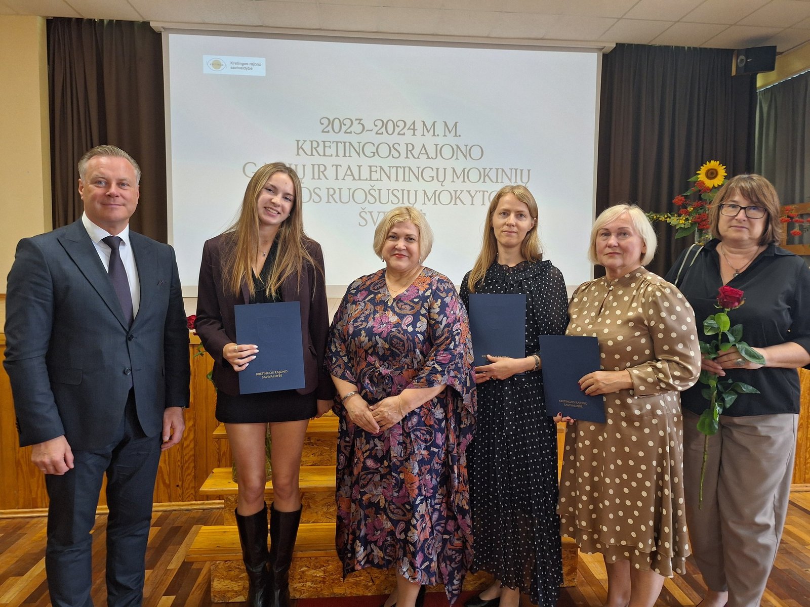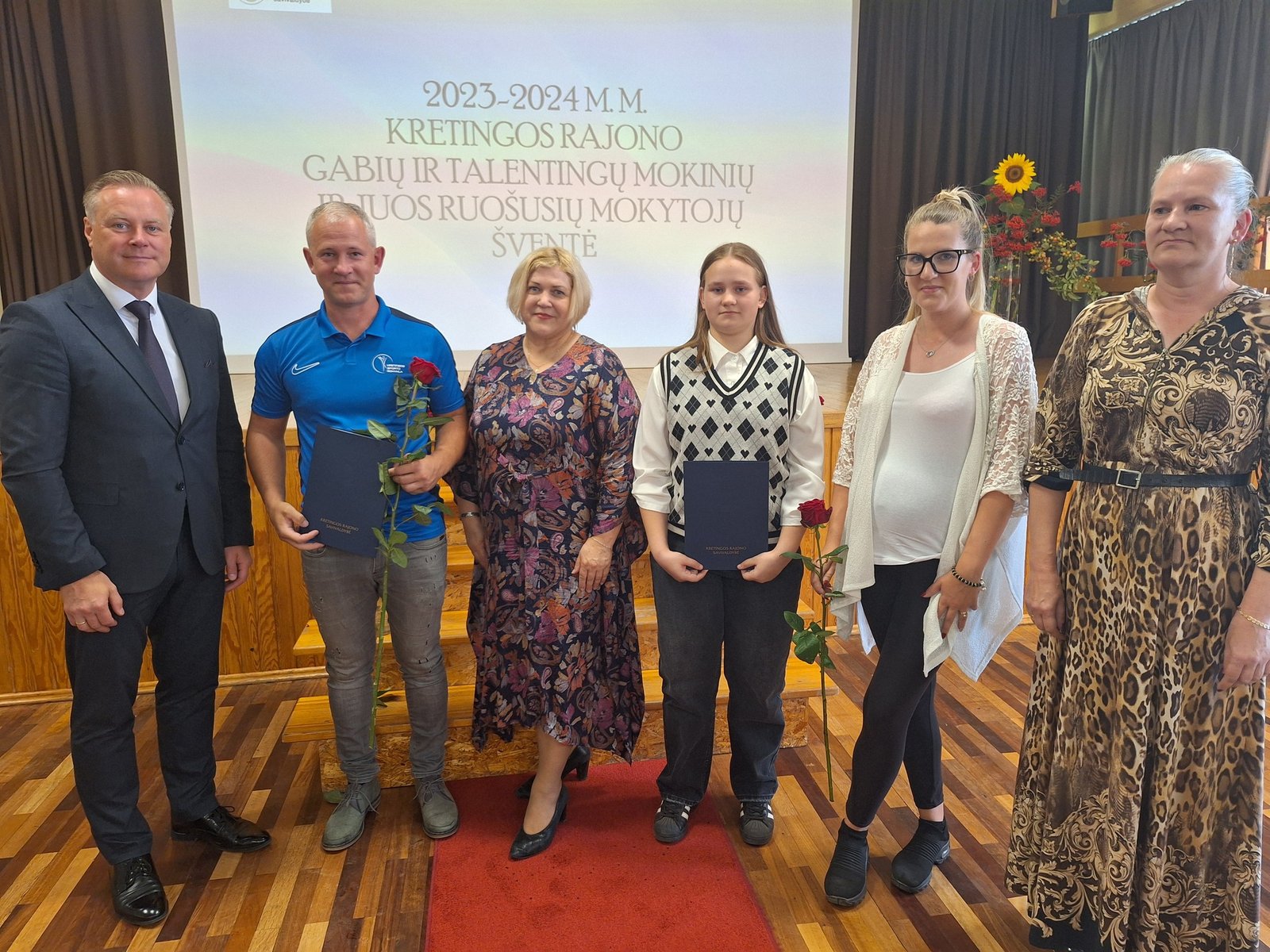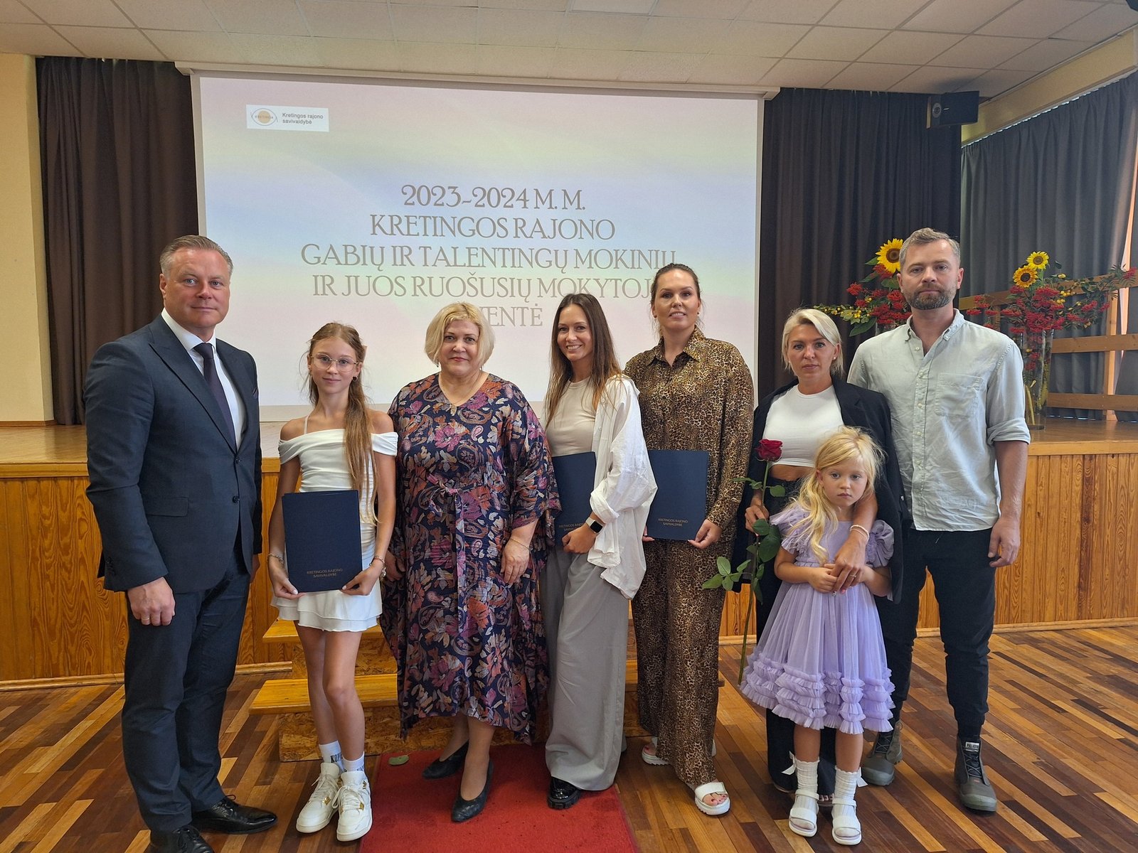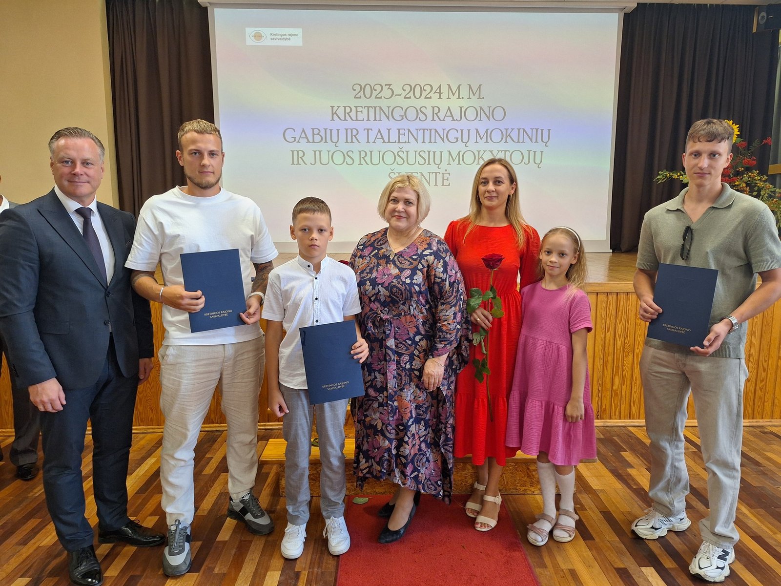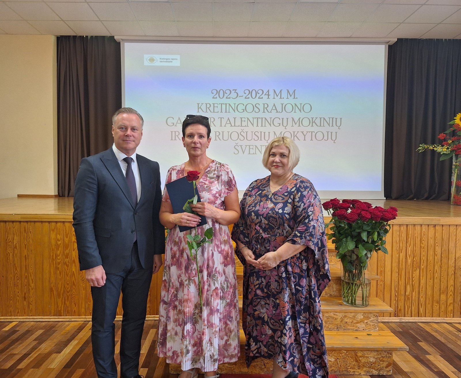 Kretingos sporto mokyklos aerobinės gimnastikos trejeto komandai – Kamilei Ilgaudaitei, Emilijai Akmenskaitei, Dangei Gruzdytei, – vaikų ir jaunimo aerobinės gimnastikos žaidynių „Kaunas 2024“ II vietos nugalėtojai, III Lietuvos aerobinės gimnastikos mėgėjų lygos čempionato Prienų rajono savivaldybės mero taurės III vietos nugalėtojai, bei ją parengusiai mokytojai Irinai Šlimienei;