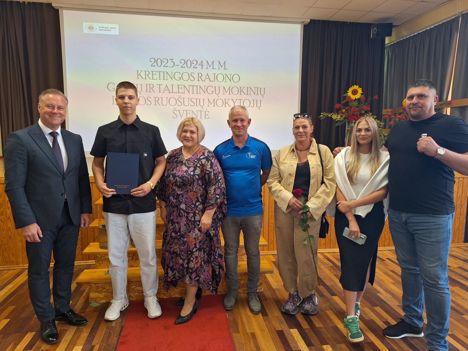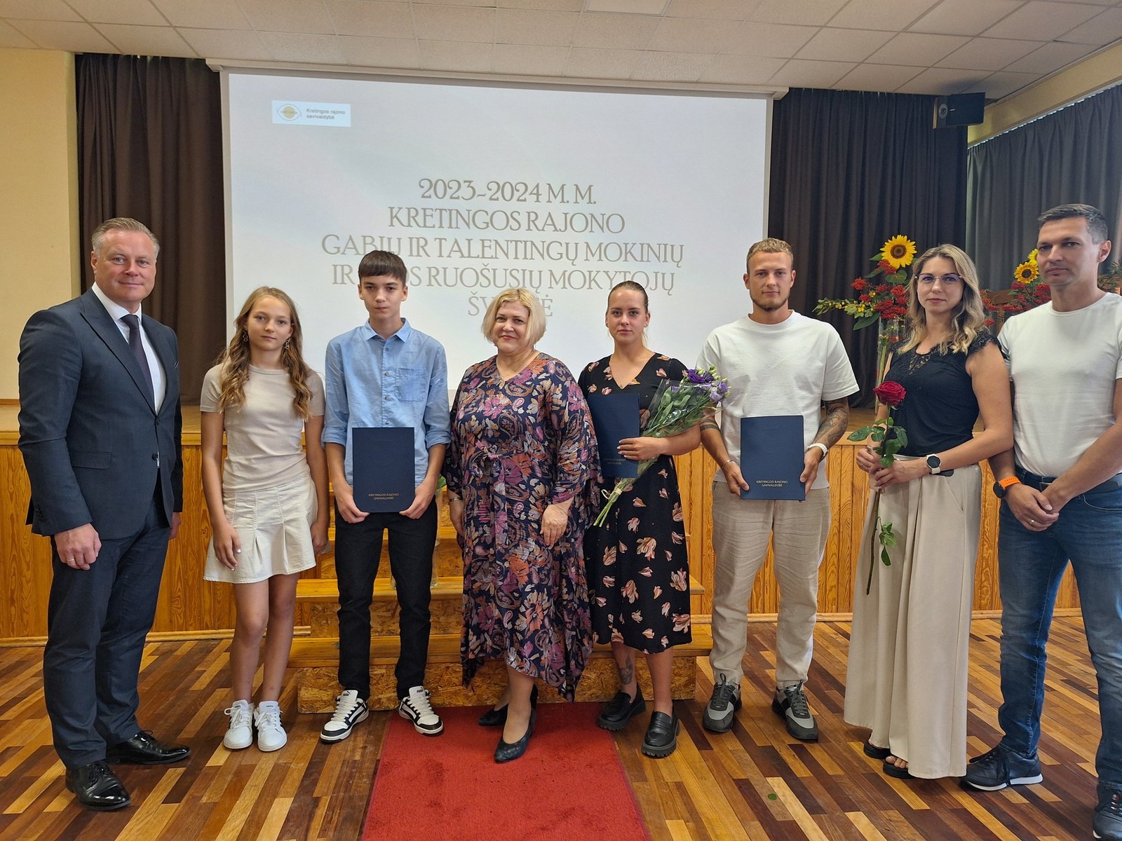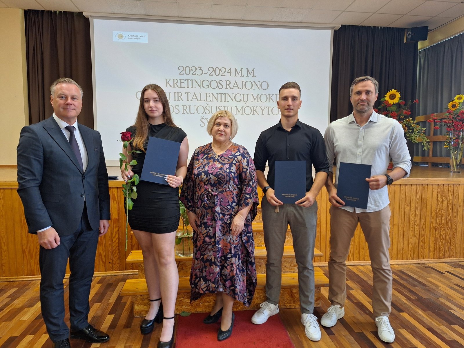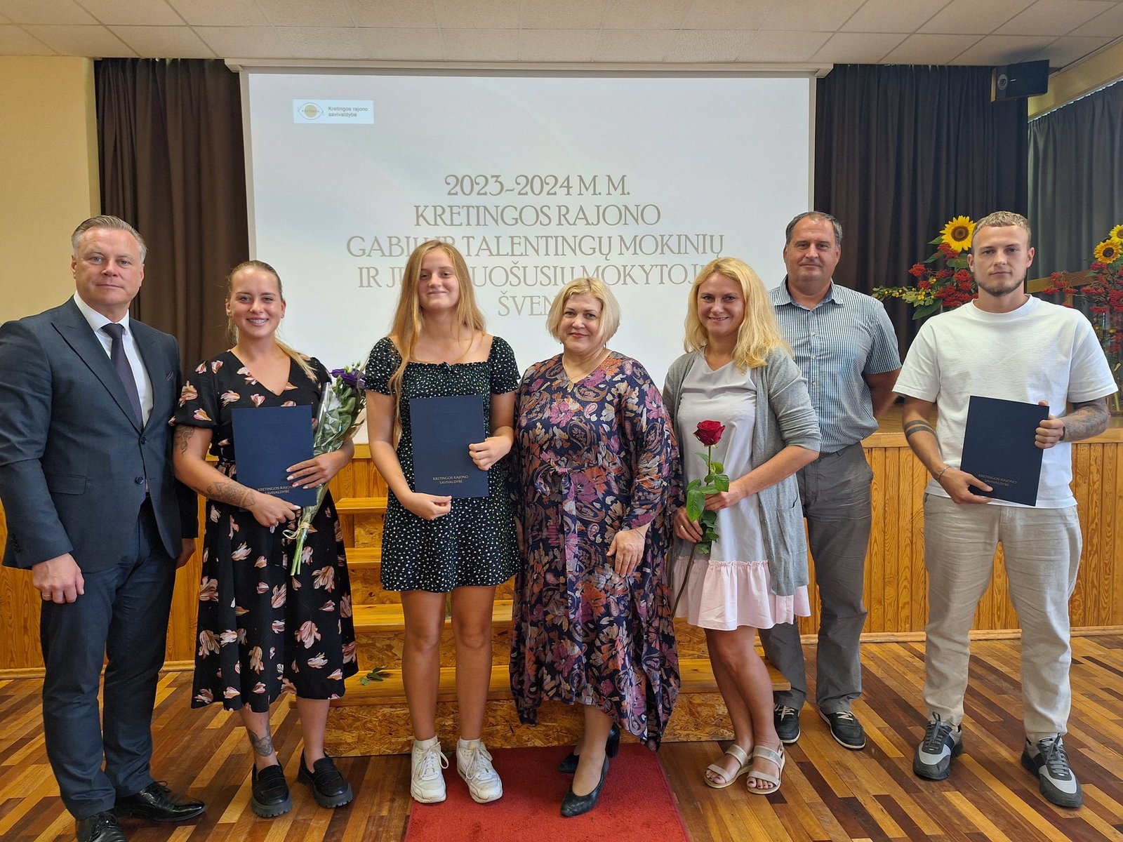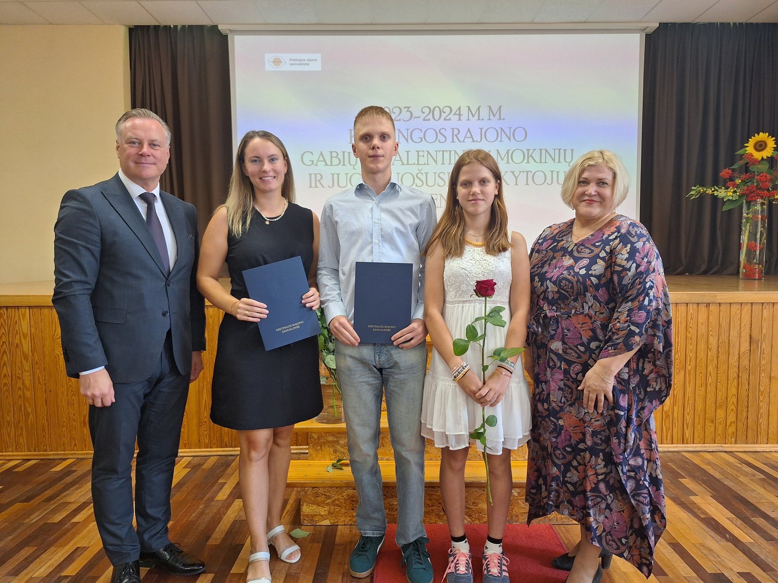 Kretingos sporto mokyklos aerobinės gimnastikos trejeto komandai – Kamilei Ilgaudaitei, Emilijai Akmenskaitei, Dangei Gruzdytei, – vaikų ir jaunimo aerobinės gimnastikos žaidynių „Kaunas 2024“ II vietos nugalėtojai, III Lietuvos aerobinės gimnastikos mėgėjų lygos čempionato Prienų rajono savivaldybės mero taurės III vietos nugalėtojai, bei ją parengusiai mokytojai Irinai Šlimienei;