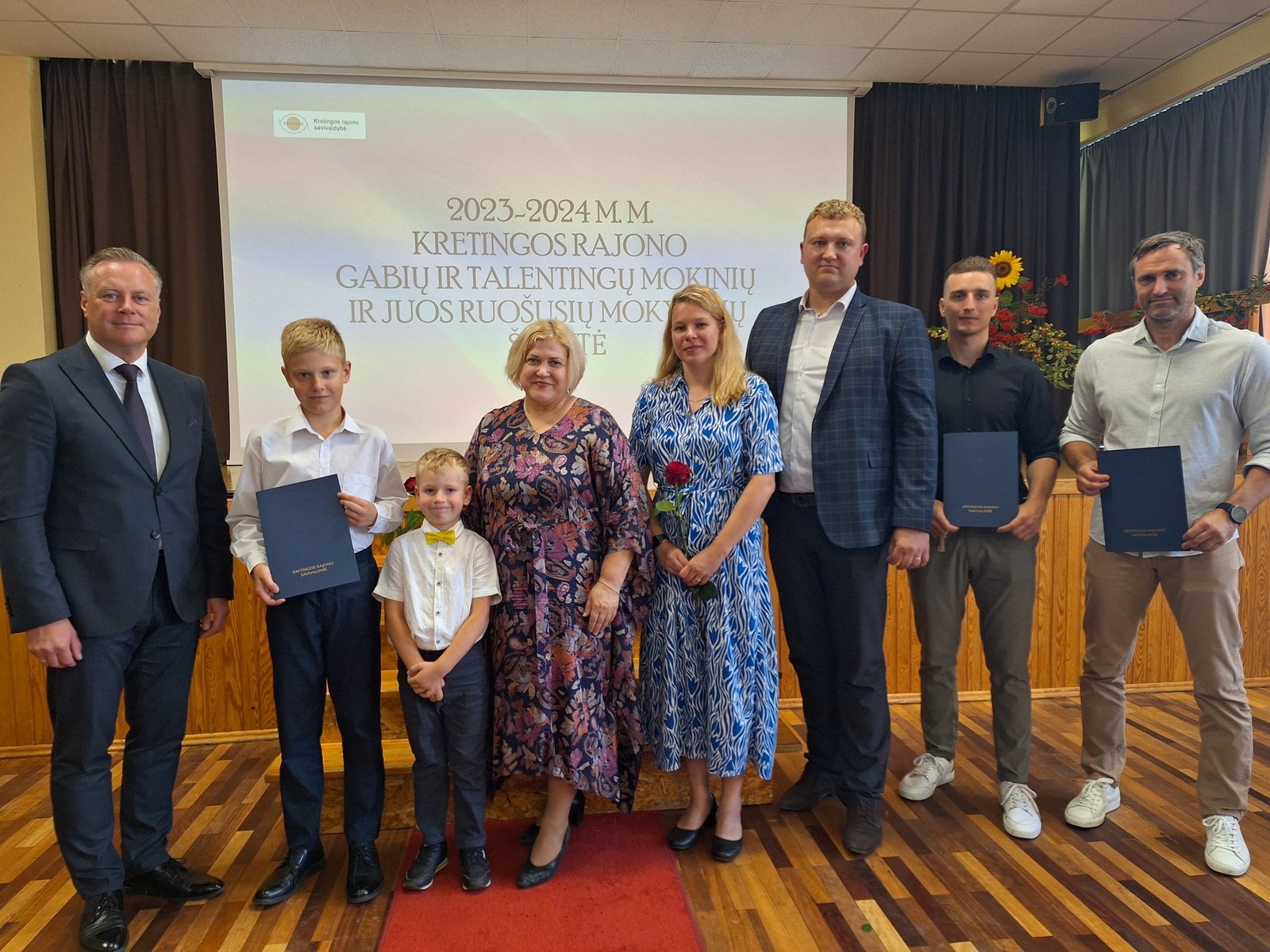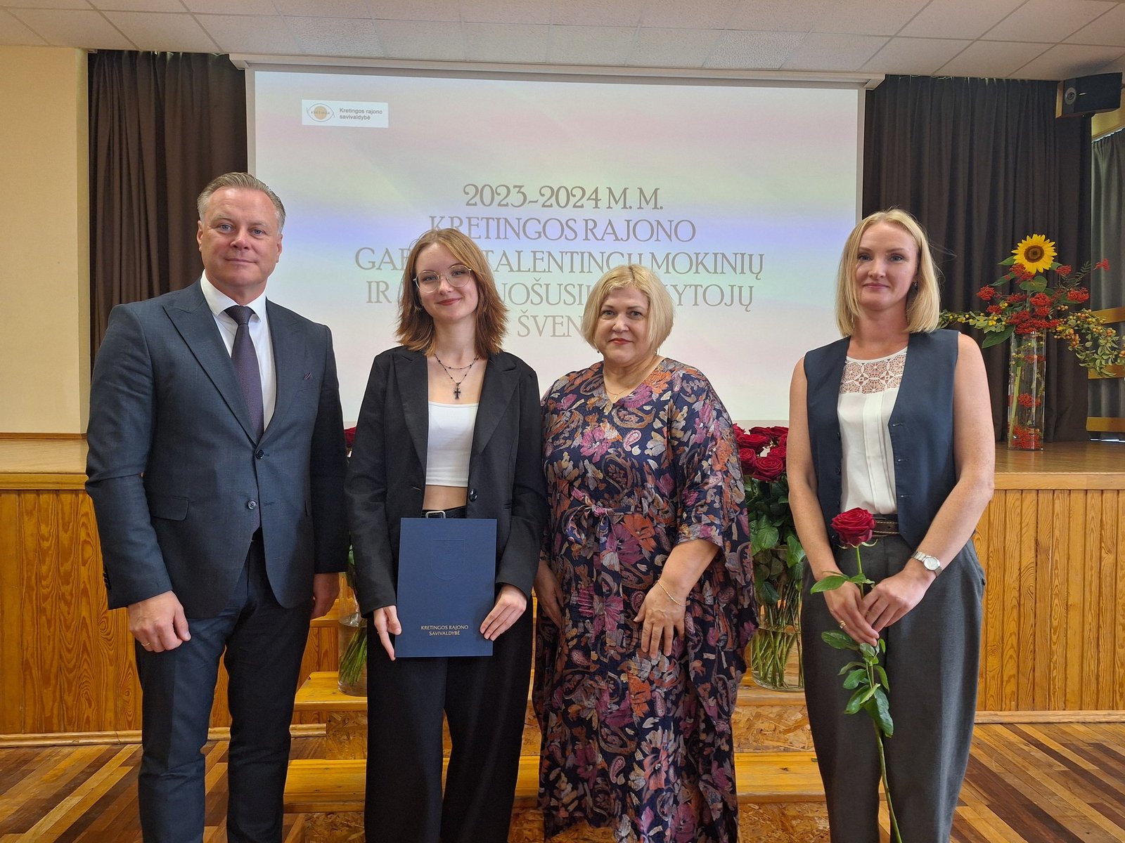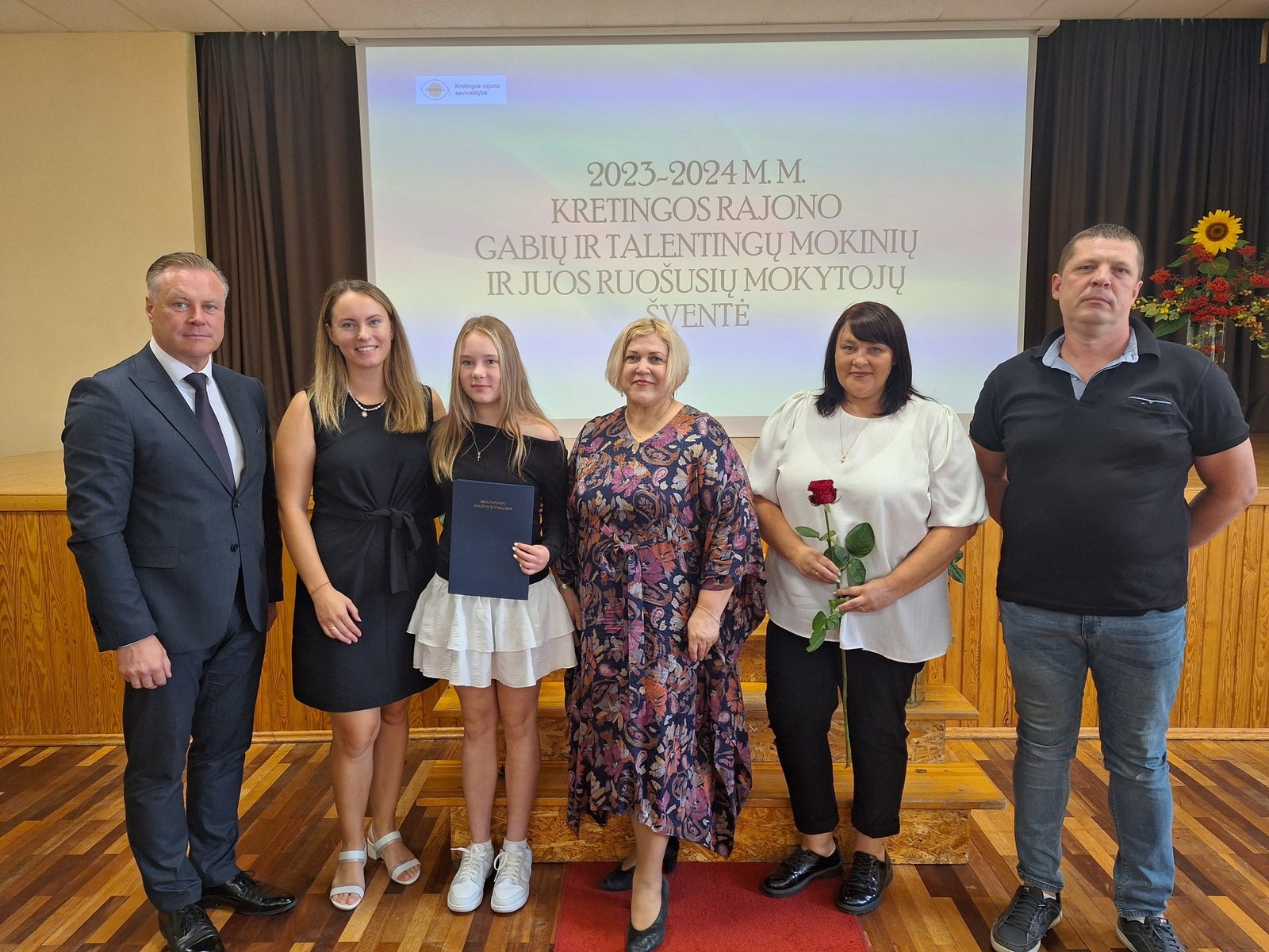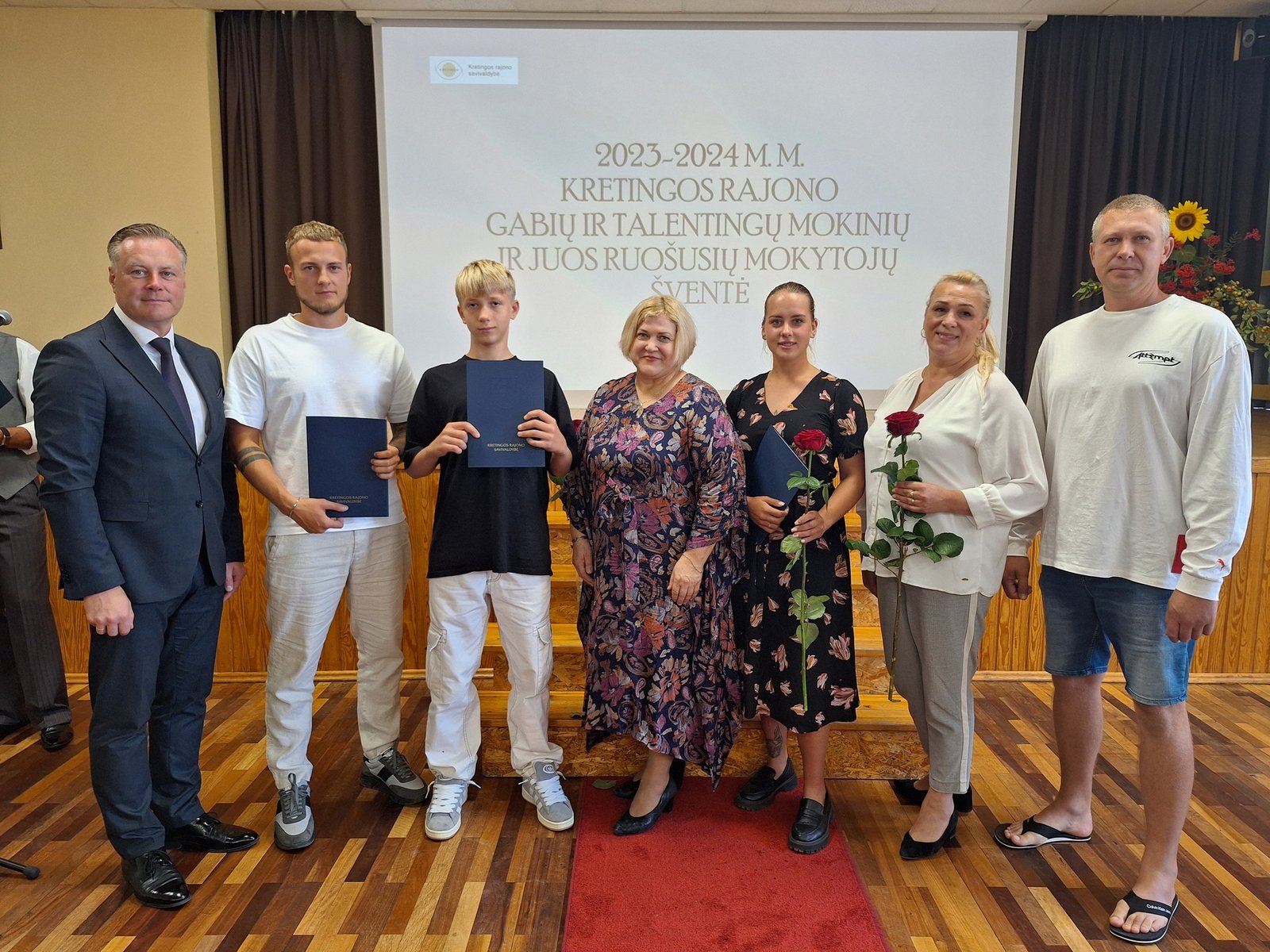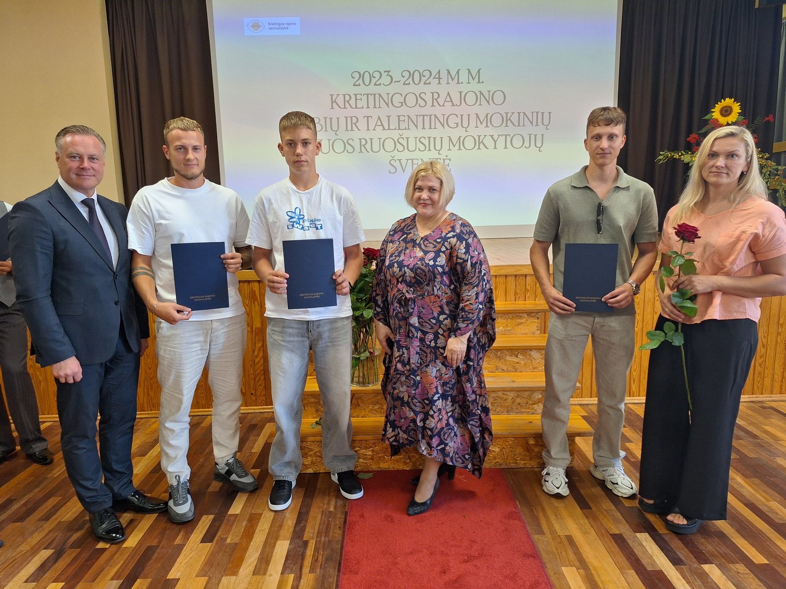 Kretingos sporto mokyklos aerobinės gimnastikos trejeto komandai – Kamilei Ilgaudaitei, Emilijai Akmenskaitei, Dangei Gruzdytei, – vaikų ir jaunimo aerobinės gimnastikos žaidynių „Kaunas 2024“ II vietos nugalėtojai, III Lietuvos aerobinės gimnastikos mėgėjų lygos čempionato Prienų rajono savivaldybės mero taurės III vietos nugalėtojai, bei ją parengusiai mokytojai Irinai Šlimienei;