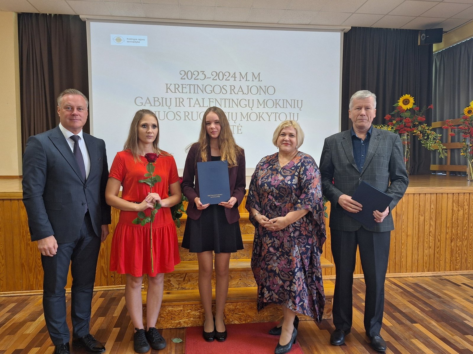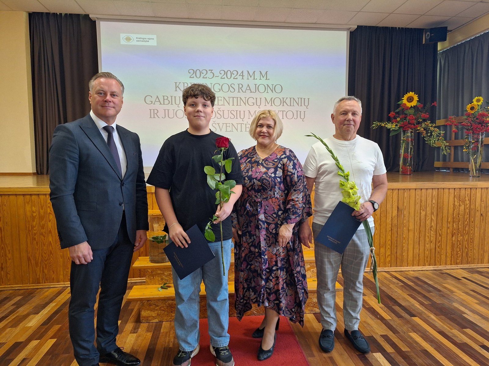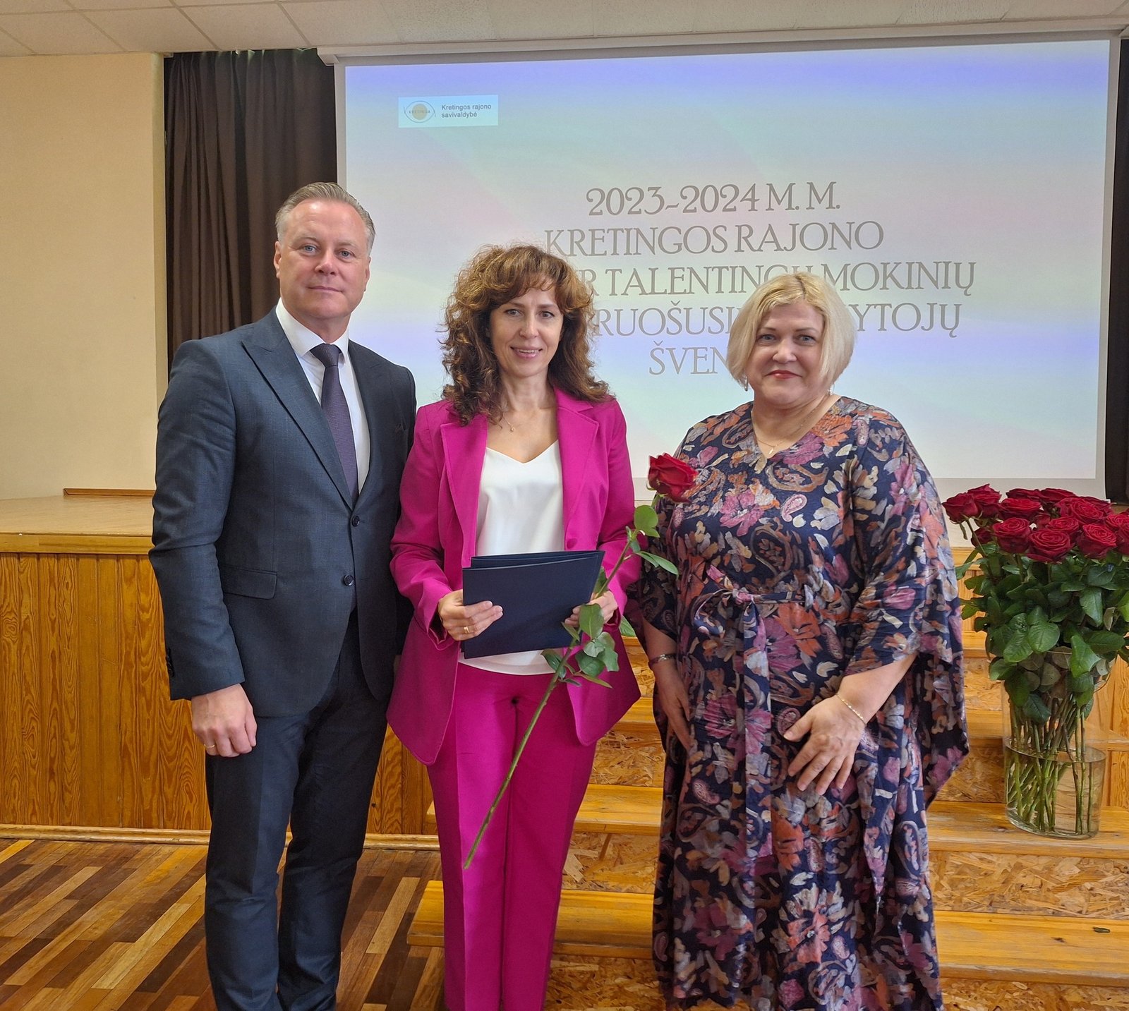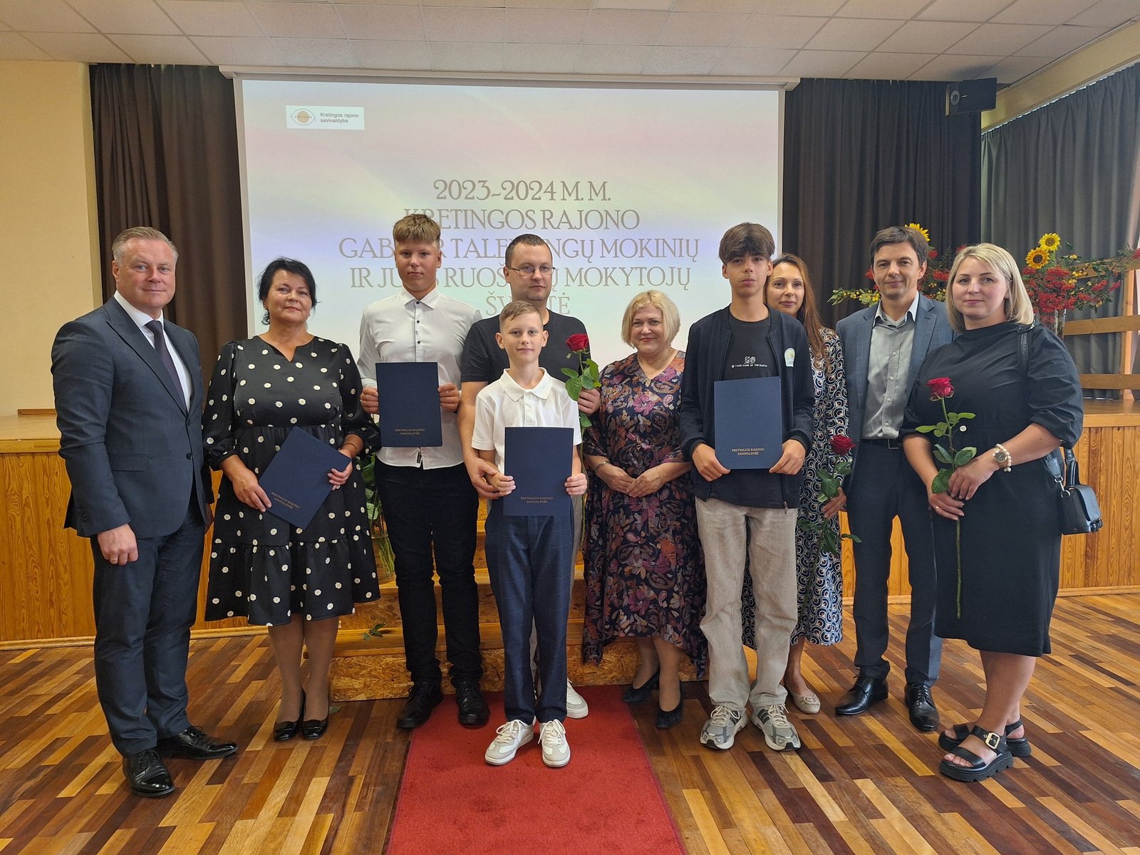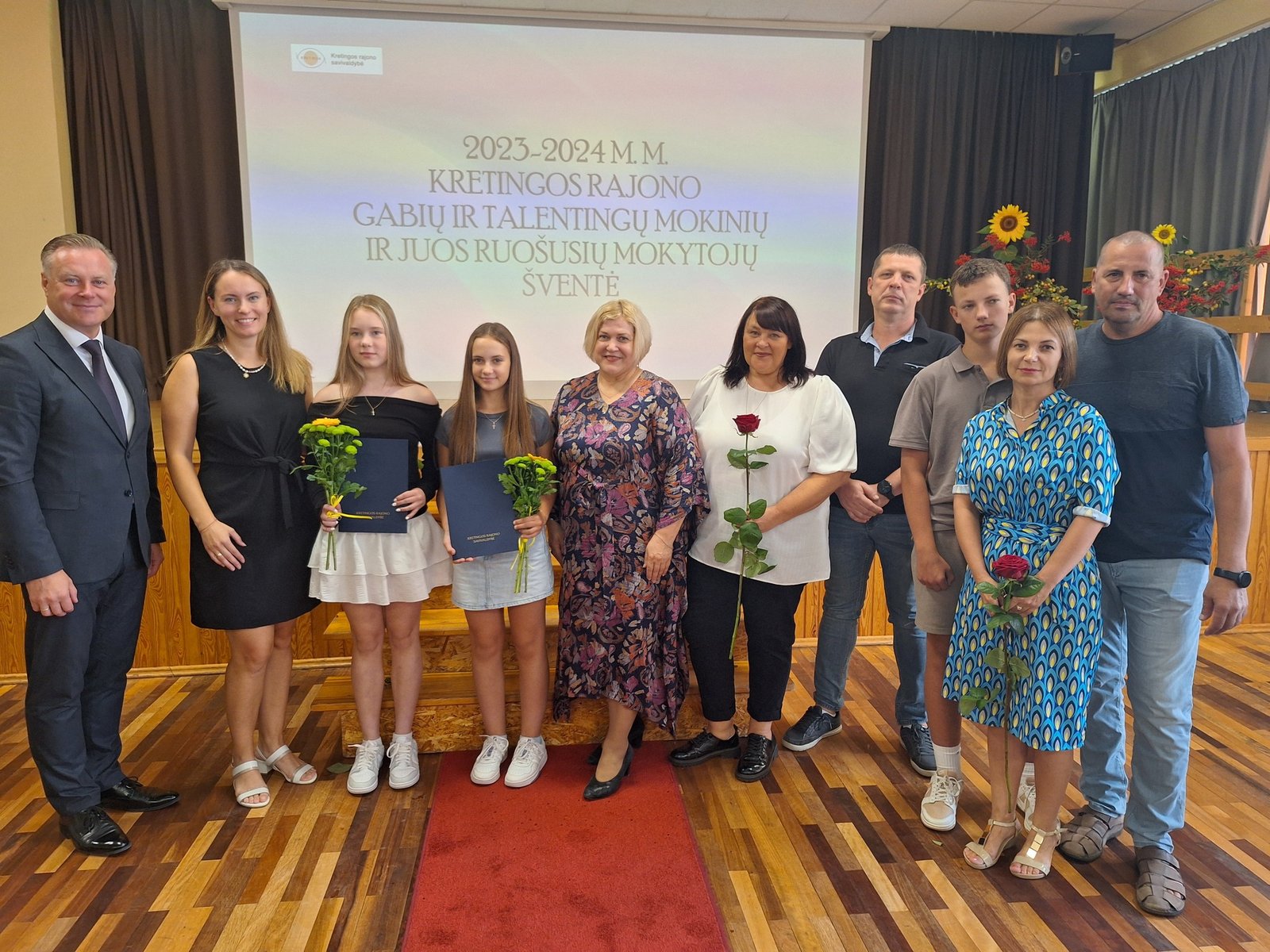 Kretingos sporto mokyklos aerobinės gimnastikos trejeto komandai – Kamilei Ilgaudaitei, Emilijai Akmenskaitei, Dangei Gruzdytei, – vaikų ir jaunimo aerobinės gimnastikos žaidynių „Kaunas 2024“ II vietos nugalėtojai, III Lietuvos aerobinės gimnastikos mėgėjų lygos čempionato Prienų rajono savivaldybės mero taurės III vietos nugalėtojai, bei ją parengusiai mokytojai Irinai Šlimienei;