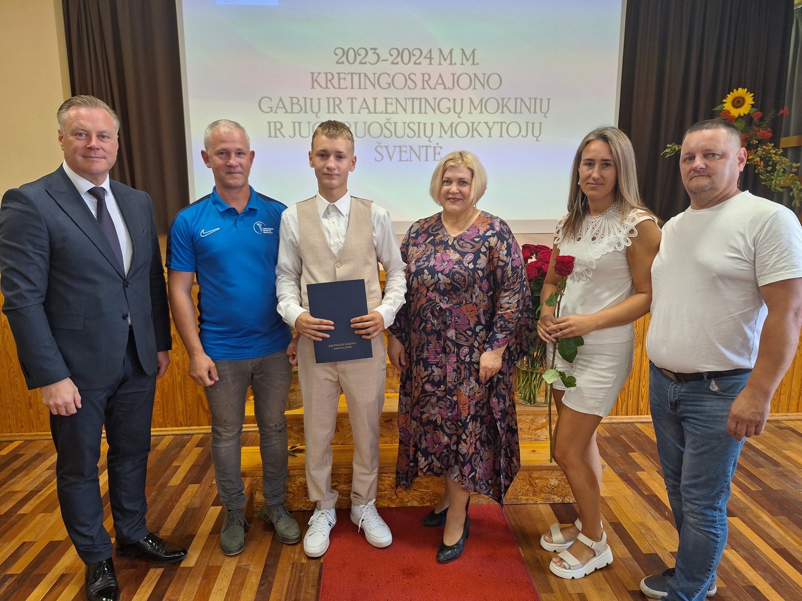 VšĮ „Ritmas Kretinga“ šokėjams Lukai Mažonytei ir Augustui Lubiui, užėmusiems III vietą 2024 m. Lietuvos standartinių šokių ir Lotynų Amerikos šokių čempionato jaunučių II grupėje, bei treneriams Eglei Mačėnaitei, Sigitai Mačėnaitei ir Alfonsui Mačėnui;
