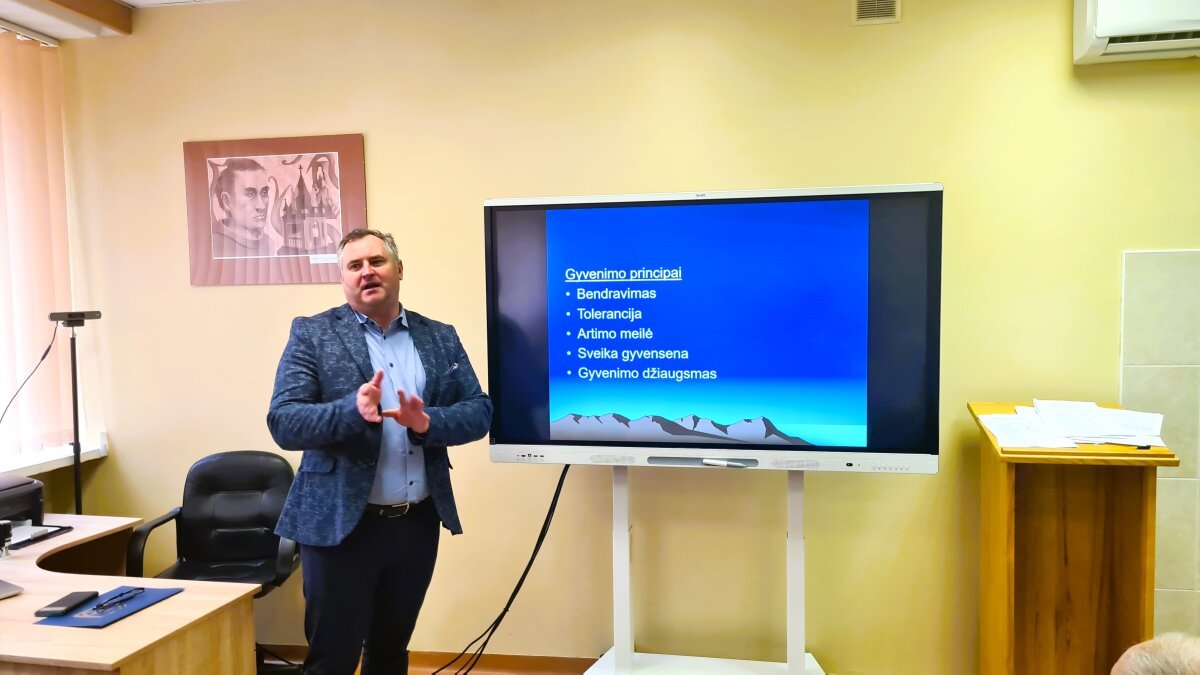 O kad susirinkę studentai ir patys kažko naujo sužinotų, gimnazijos direktorius dr. Kęstutis Trakšelys paskaitė pranešimą „Laimingos senatvės principai“. Svečiai buvo sužavėti optimistiško, įkvepiančio, žaismingo paskaitos tono, lektoriaus humoro jausmo, tad paskaita neprailgo, auditorijoje skambėjo juokas. Anot lektoriaus, „tikrai geriau žvelgti į gyvenimą optimistiškai nei dejuoti ir visus kaltinti“.