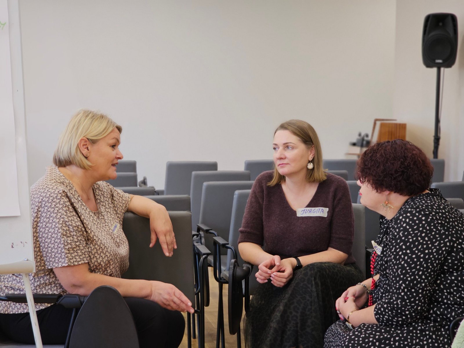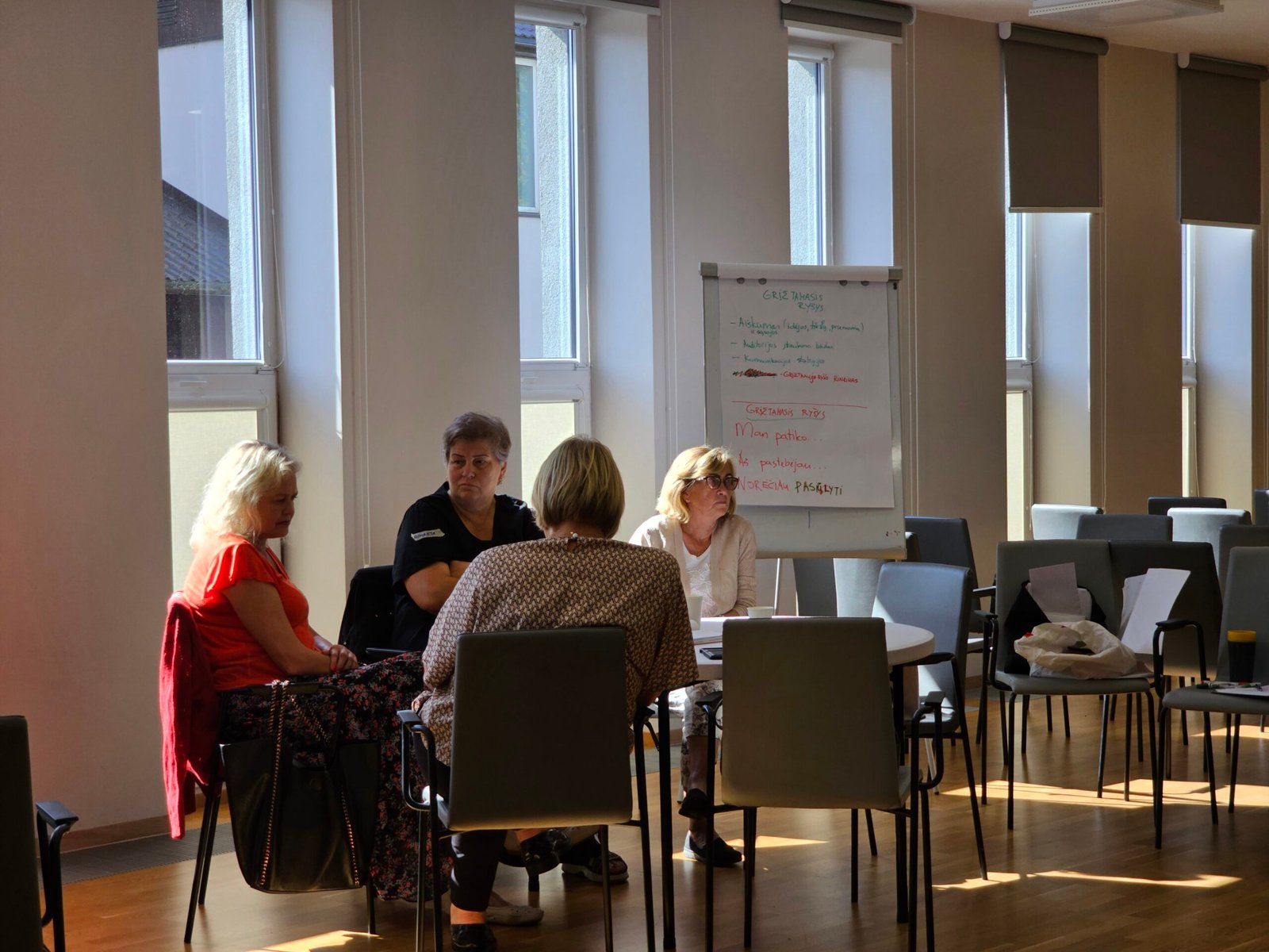 Projekte dalyvaujančių bendruomenių specialistai šį kartą į mokymus atvyko su iš anksto paruoštomis bendruomenėms skirtų renginių idėjomis, kurias minčių lietaus metodo būdu aptarė su kolegomis.