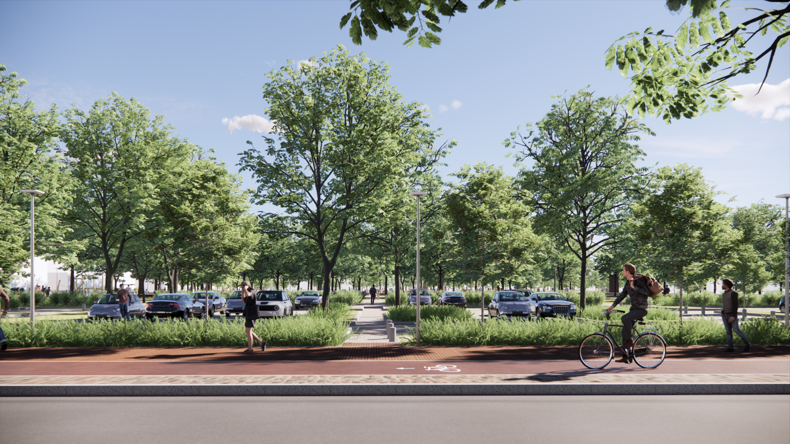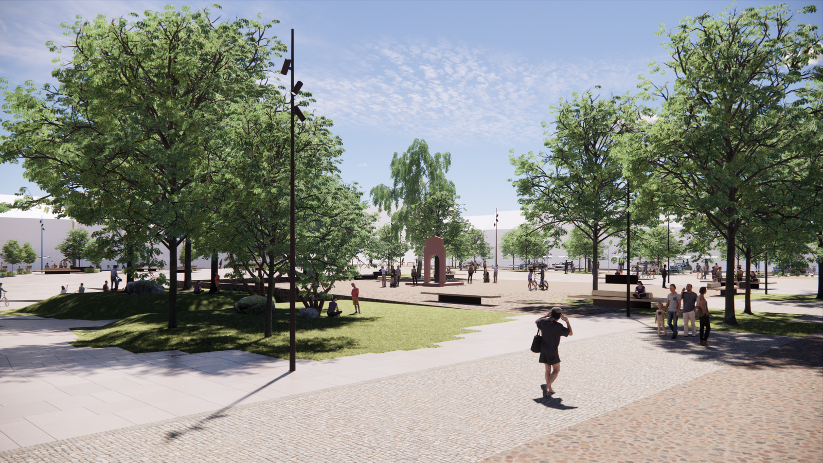 Aikštėje numatoma išsaugoti esamus medžius bei gėlynus, sodinti naujus medžius šalia aikštę juosiančių gatvių. Naujai įrengiamos automobilių aikštelės bus įterptos tarp dabar jau augančių medžių bei apsodintos naujais želdynais, turės vandeniui laidžias dangas.