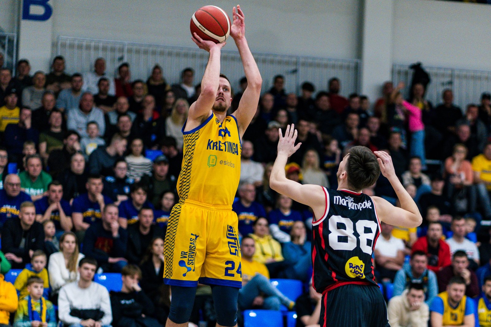 Sausakimšame Kretingos sporto centre į pergalių kelią „7bet-NKL“ atkrintamosiose tvirtai grįžo Marijampolės „Sūduva-Mantinga“. Tomo Gaidamavičiaus kariauna išvykoje 82:59 (23:12, 24:16, 22:8, 13:23) nepasigailėjo „Kretingos“.