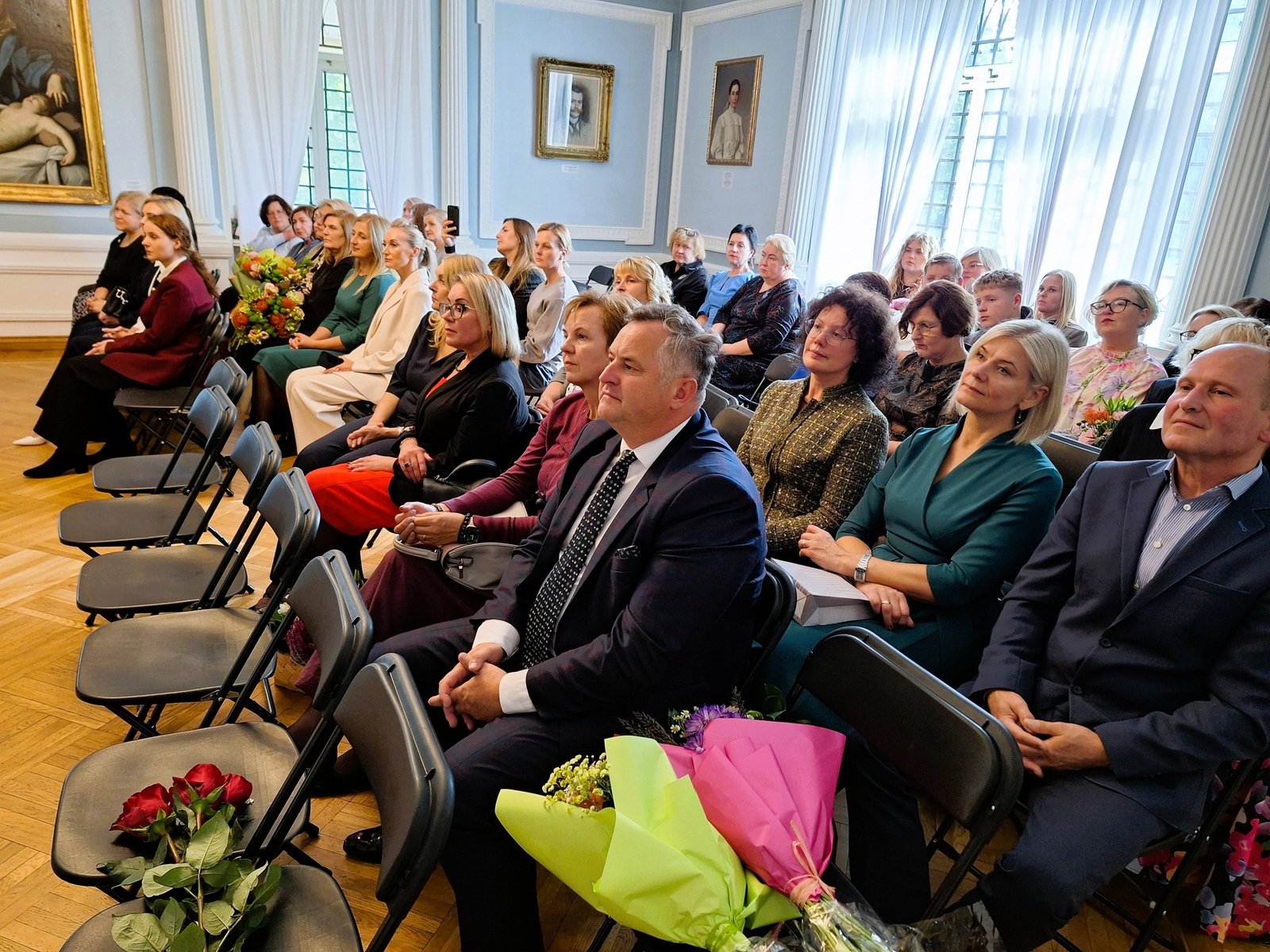 Tarptautinės mokytojų dienos proga Kretingos muziejaus Baltoji salė prisipildė šventiškos nuotaikos ir padėkos žodžių – čia jau dešimtąjį, jubiliejinį, kartą pagerbti ir pasveikinti geriausi rajono pedagogai. Jiems įteikti nominacijų už akademinius, sportinius, kūrybinius mokinių pasiekimus, už kultūrinio identiteto ir pilietiškumo puoselėjimą, už lyderystę, kūrybinių idėjų generavimą ir kitus švietimo srityje nuveiktus svarbius darbus apdovanojimai. Pedagogams skirti kretingiškės dailininkės Lidijos Kuklienės sukurti atvirukai bei juvelyro Gražvydo Kasparavičiaus proginės statulėlės.